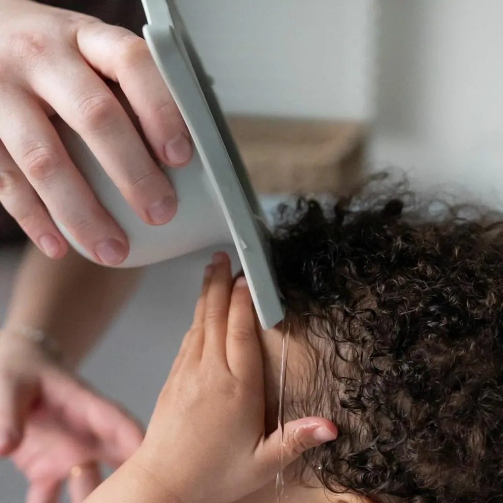 – Se remplit d’eau et se place à la base du front pour rincer les cheveux.