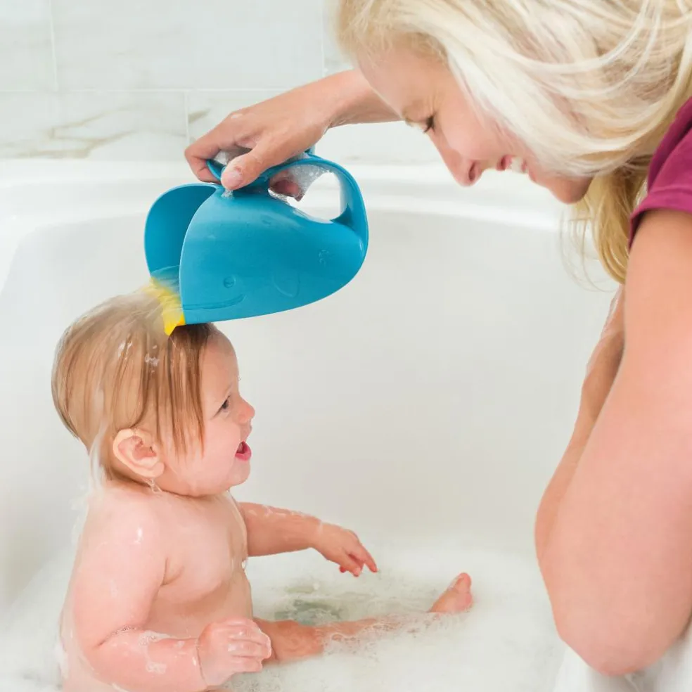 Le Rince tête Moby de Skip Hop permettra à bébé de ne pas avoir d’eau dans les yeux lors du bain.