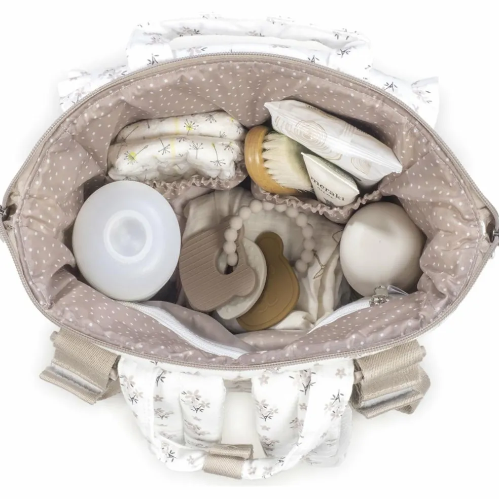 – Design élégant et discret : Imprimé floral sur fond crème, idéal pour les mamans et papas qui recherchent un accessoire à la fois utile et stylé.