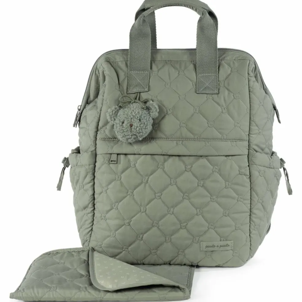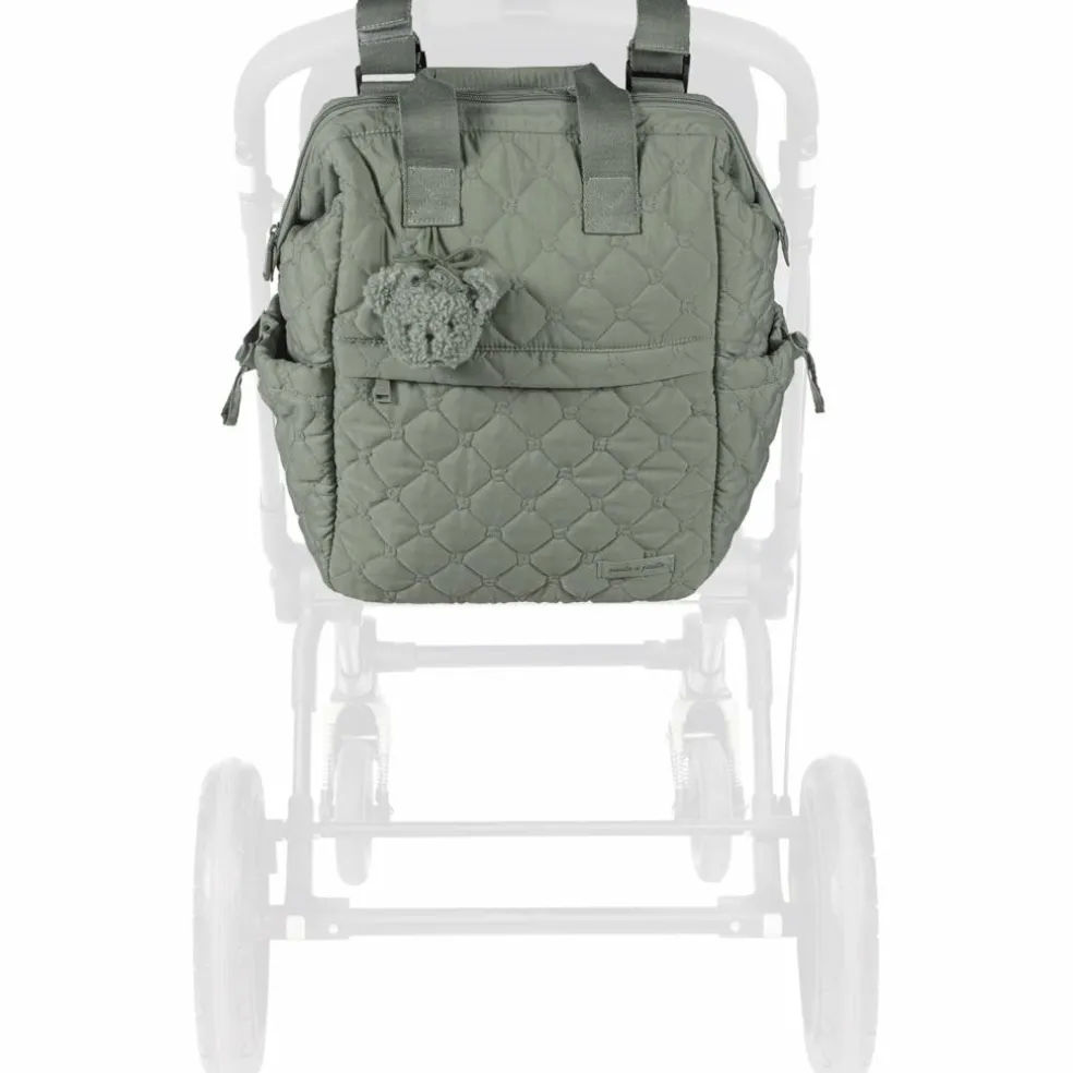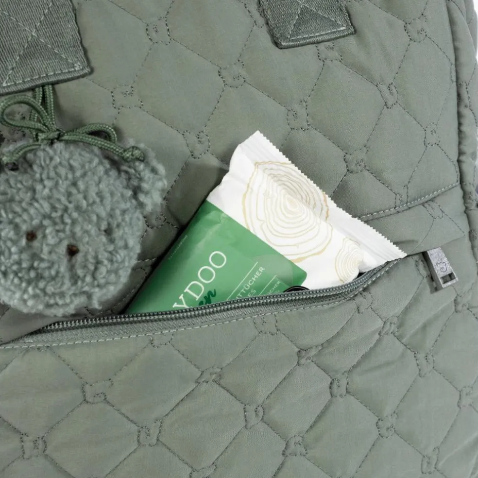 – Le sac à dos Paddington vert est fabriqué en matériau matelassé résistant.