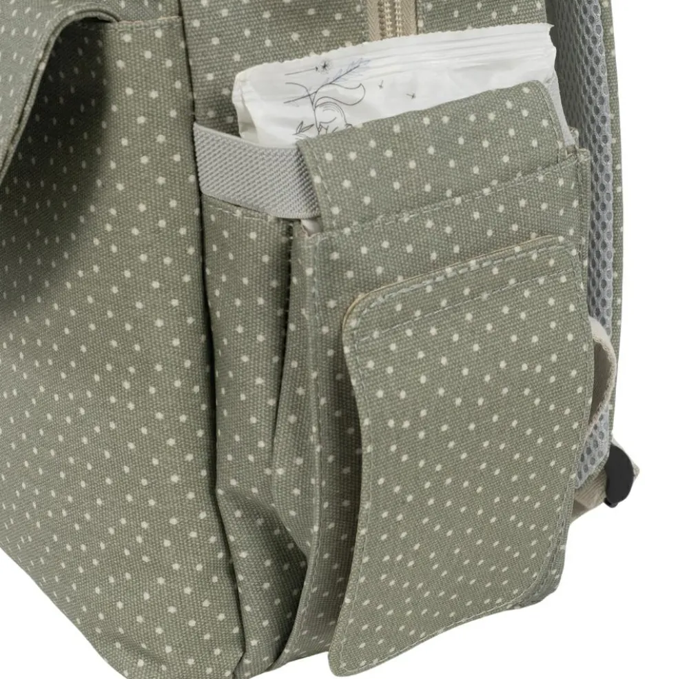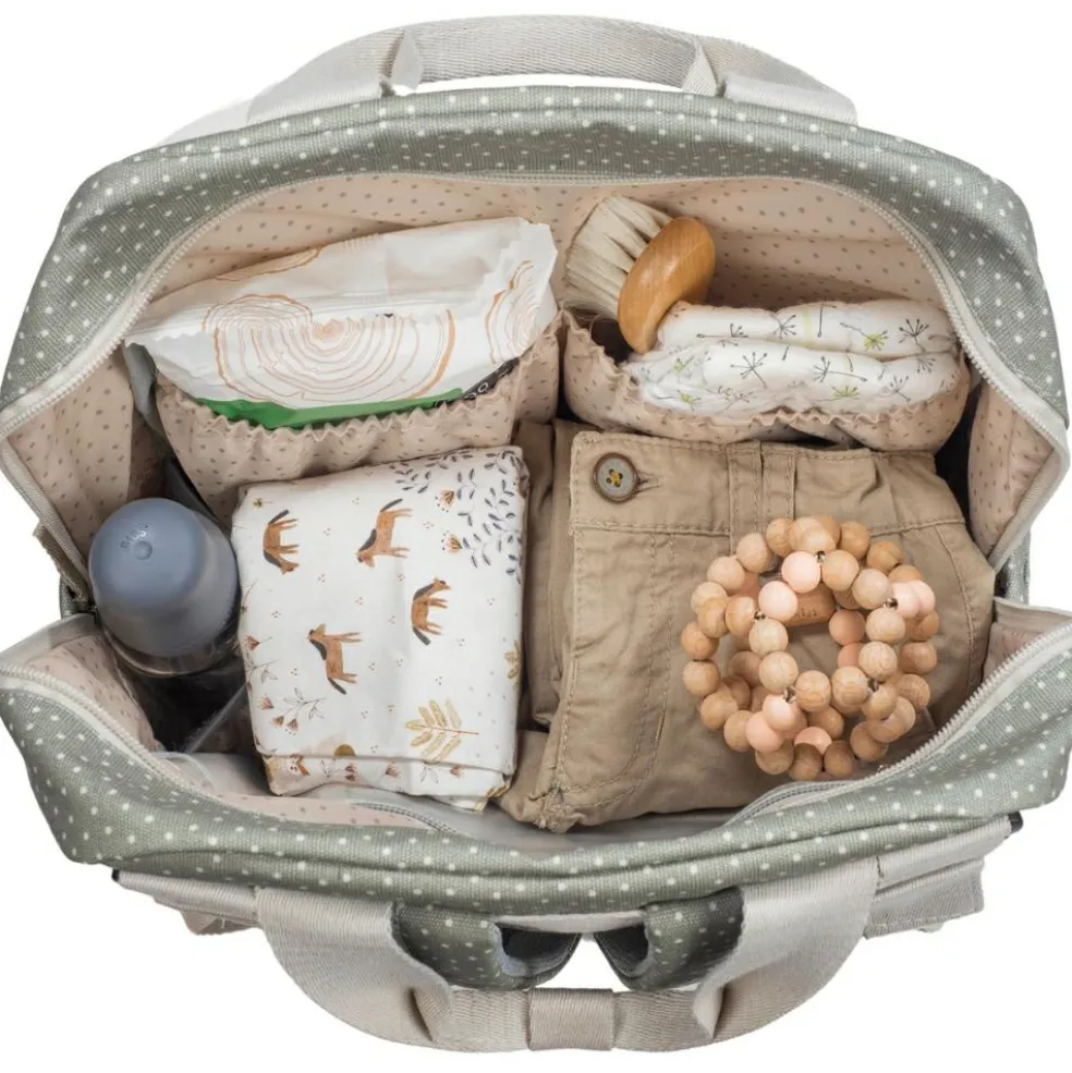 – Le sac poussette Poppy Vert Mousse à pois est un modèle multifonction très léger, résistant et de grande capacité pour transporter tout le nécessaire à la promenade de votre bébé.