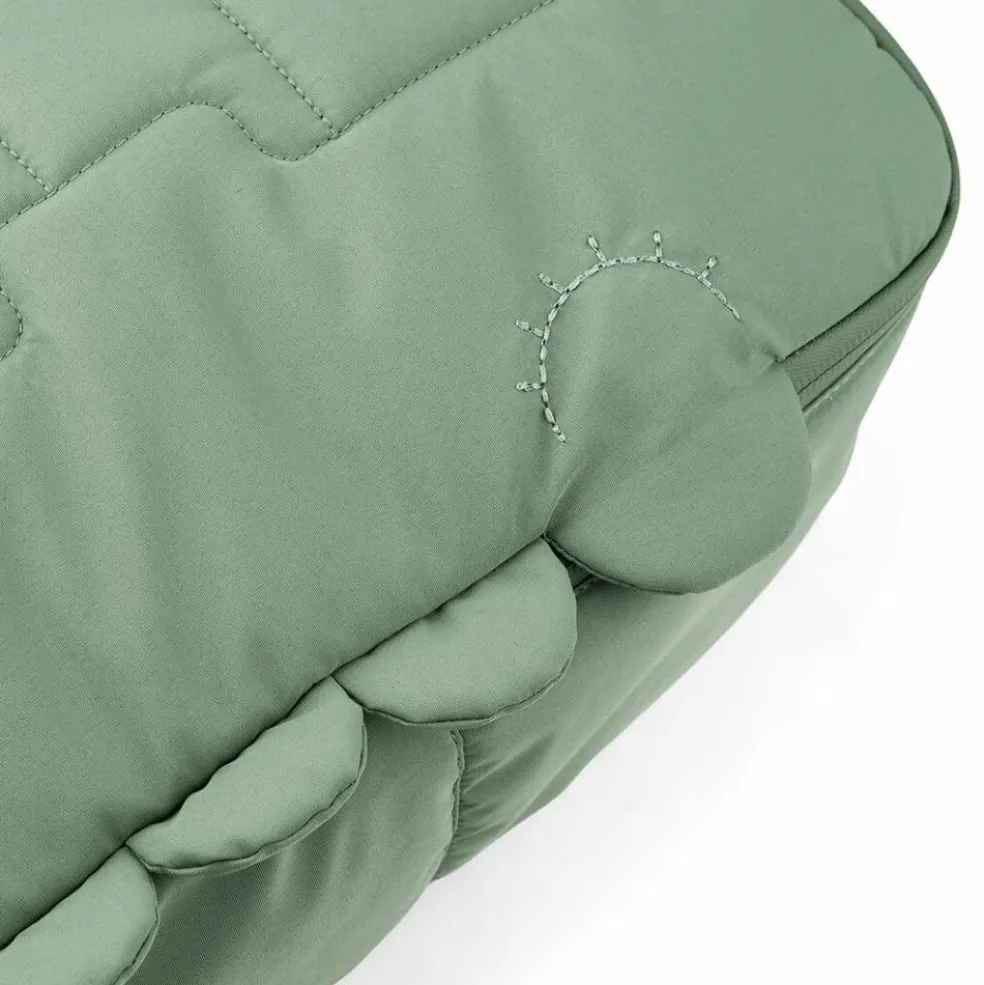 Le sac à dos matelassé a la taille idéale pour les petits enfants. Grâce à son grand compartiment et ses deux pochettes, vous pouvez facilement ranger les affaires de votre petit. Les sangles d’épaules et de poitrine assurent un ajustement parfait. Le sac à dos a une fermeture éclair imperméable à double sens et une surface résistante aux intempéries qui est facile à nettoyer avec un chiffon humide. Il est en polyester recyclé, fabriqué à partir de 22 bouteilles PET. Le sac à dos a un design matelassé et une jolie couleur verte. Croco dort sur le front et ses écailles typiques décorent le côté du sac à dos. À l’intérieur, Croco garde les affaires de l’enfant depuis la rigolote étiquette pour inscrire le nom.