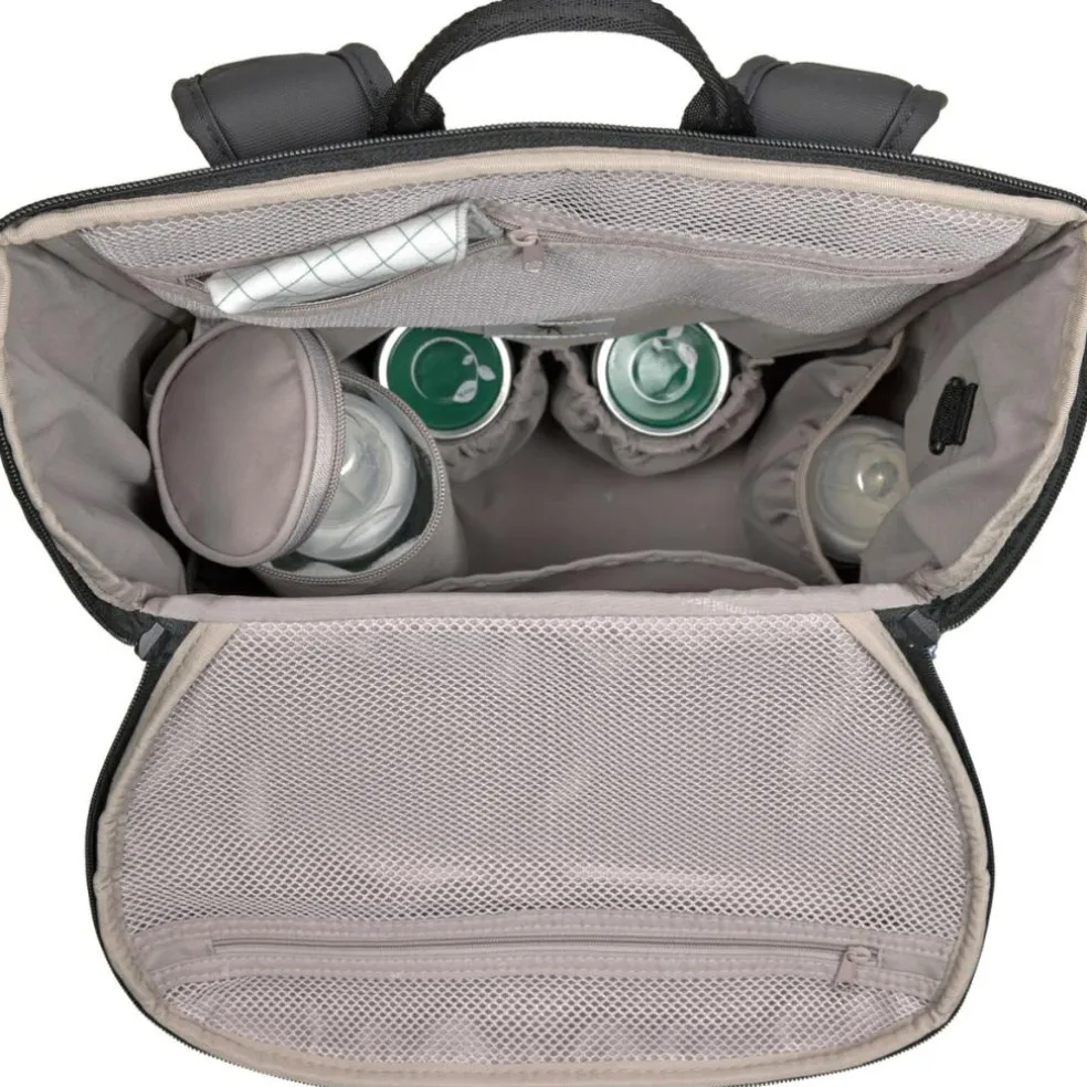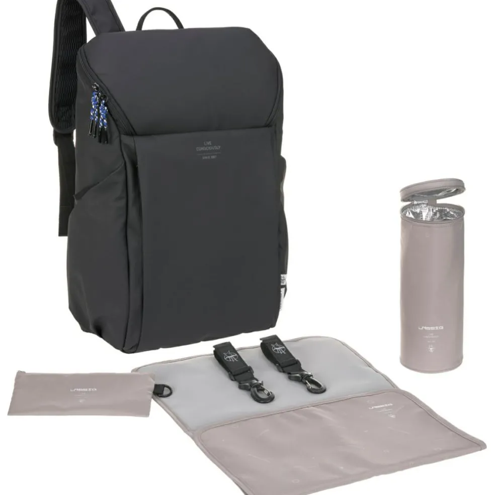 – Le sac à dos à langer Slender Up de la collection Green Label de Lässig a un espace de rangement bien conçu et comprend de nombreux accessoires à langer.