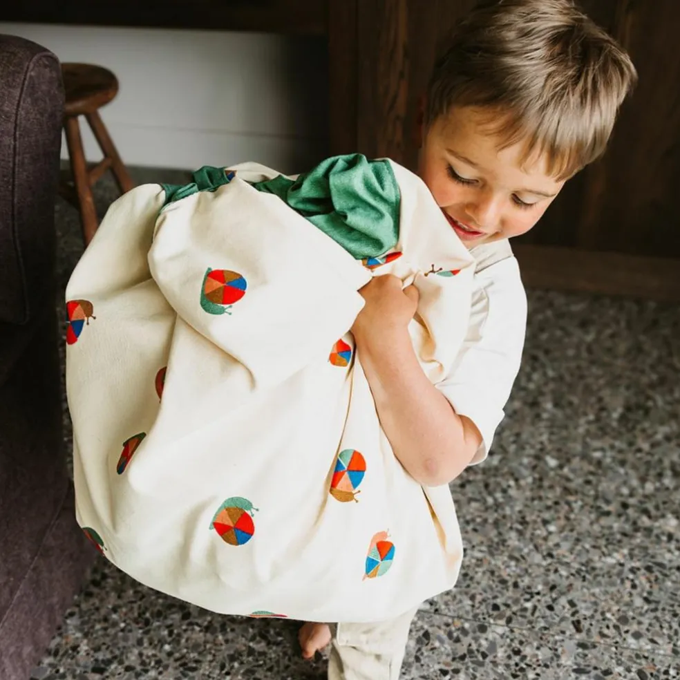 Avec son adorable motif d’escargot, ce sac malin apporte douceur et originalité dans la chambre de votre enfant. Déplié, il se transforme en un large tapis de jeu confortable où les petits explorateurs peuvent construire, inventer et rêver. Une fois l’aventure terminée, un simple geste suffit : tirez sur le cordon et le tapis se referme en sac de rangement pratique. Résultat : une pièce rangée rapidement, sans effort, et un quotidien plus serein.