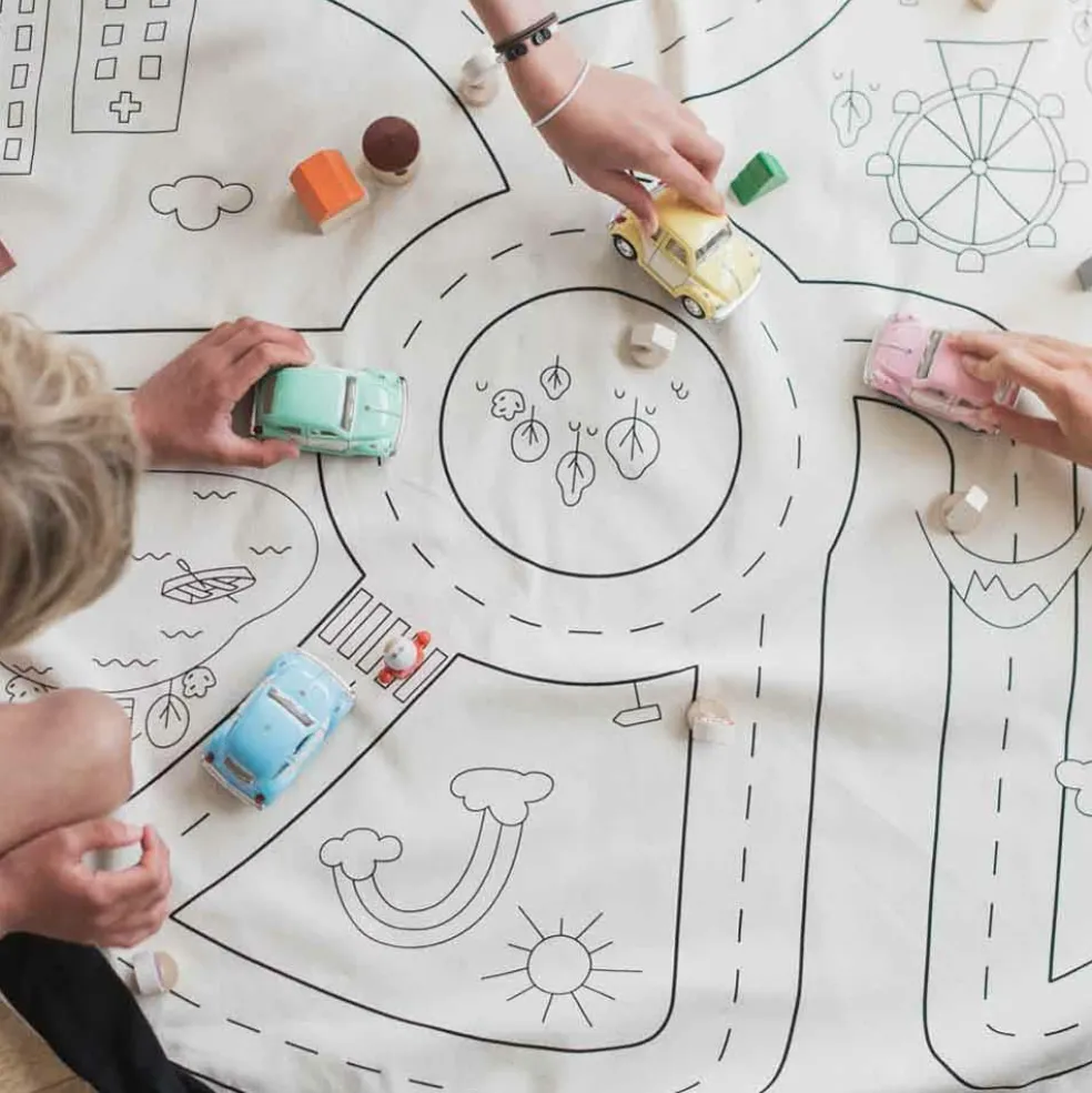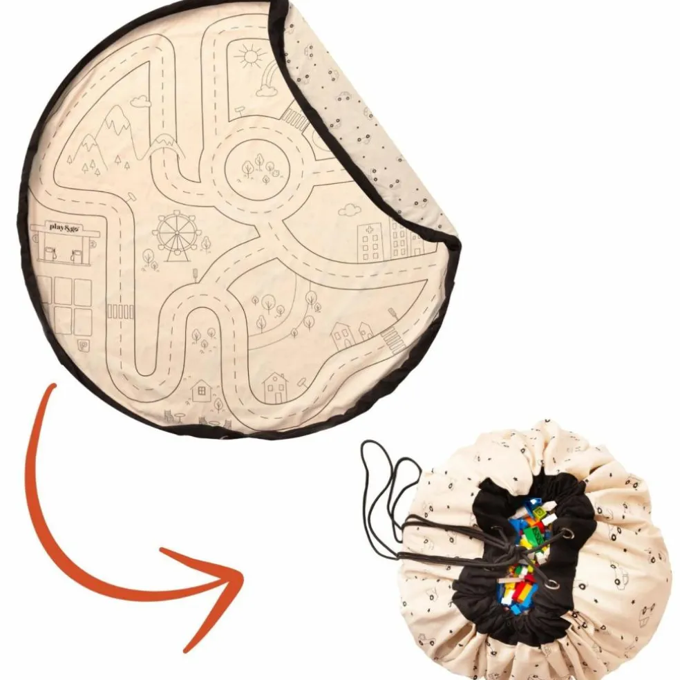 – 2 en 1 : sac de rangement et tapis de jeu.
