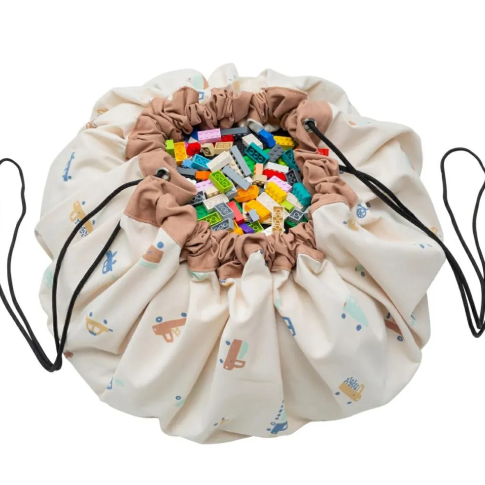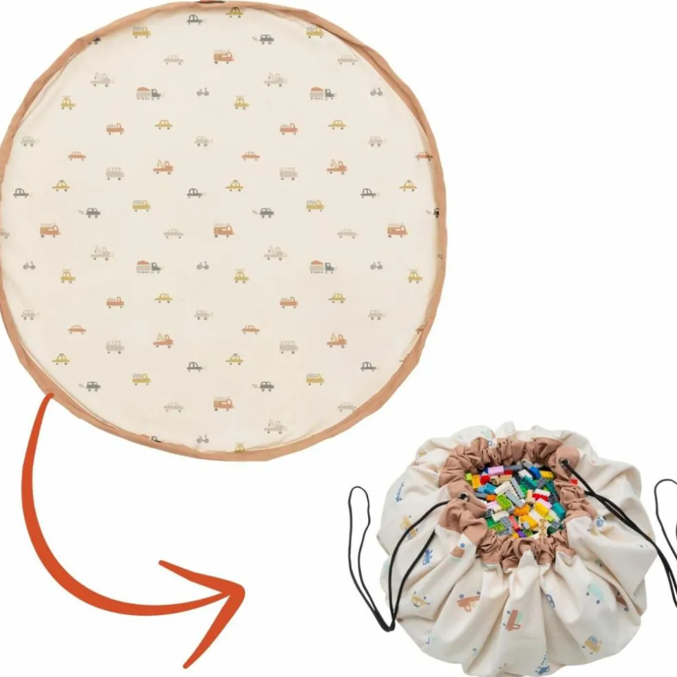 – 2 en 1 : sac à jouets et tapis de jeu.