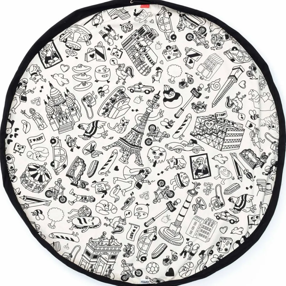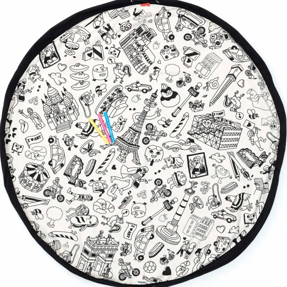 Le sac à jouets 2 en 1 réversible Color your bag Parisde la marque Play&Go permet de transporter facilement les jouets d’une pièce à l’autre ou même hors de la maison. Confectionné en tissu résistant, il devient un tapis de jeu lorsqu’on desserre les liens. Dès que l’enfant a fini de jouer, il suffit de serrer à nouveau les liens et tout est déjà rangé !