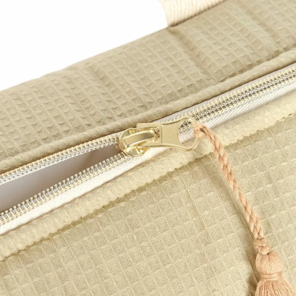 Matière : Nid d’abeille 100% coton bio , doublure 100% polyester imperméable , remplissage 100% polyester min. 75% PET recyclé