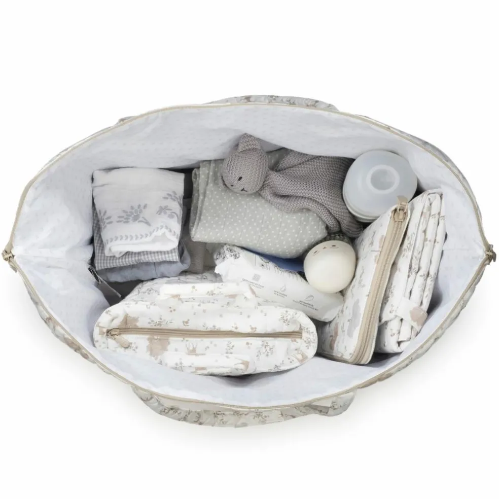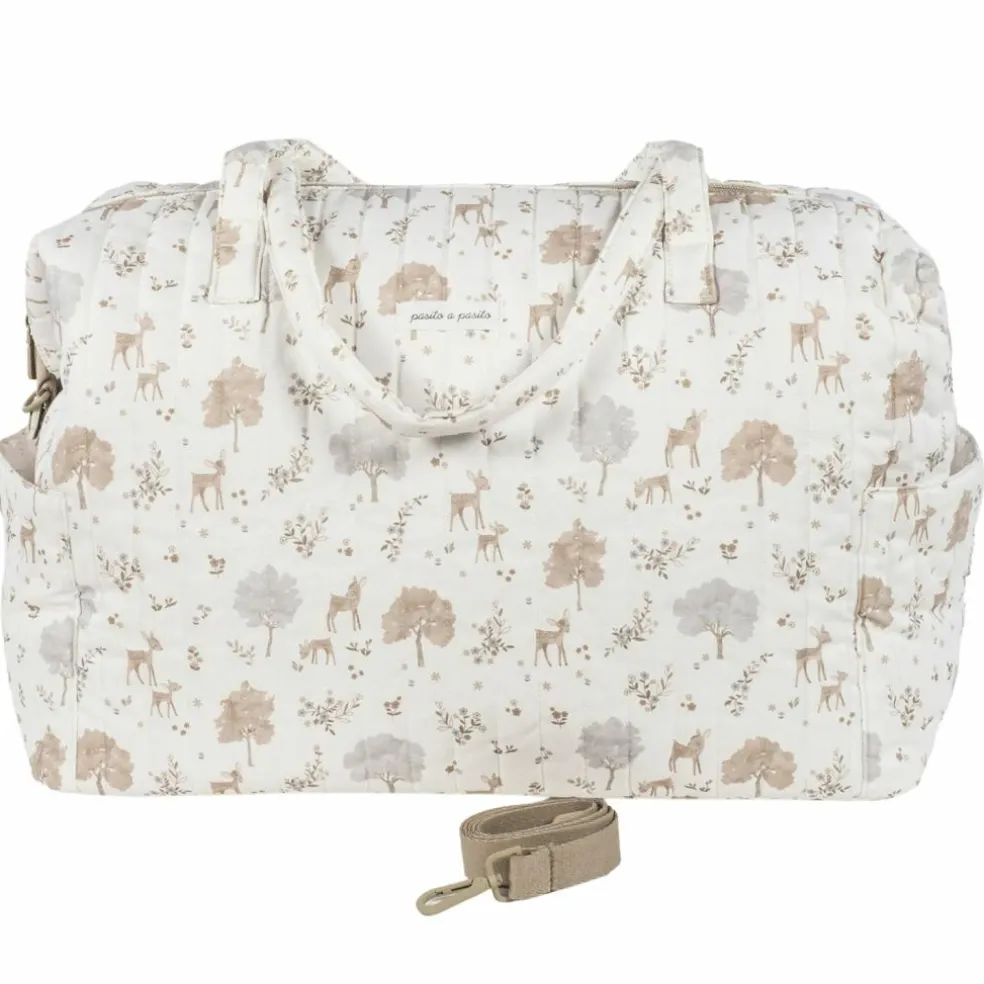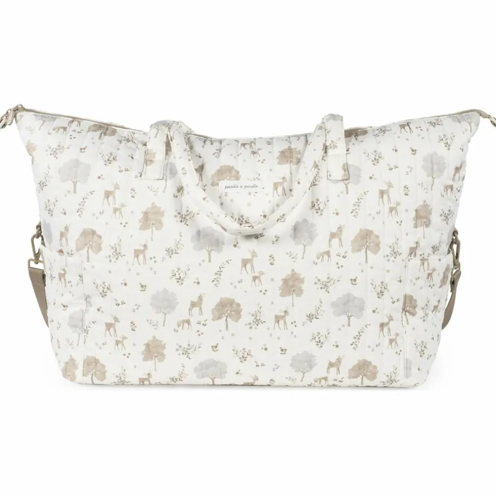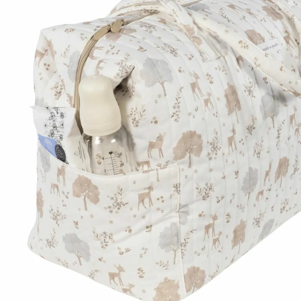 – Découvrez la combinaison parfaite de style et de praticité avec notre sac Nara XL fabriqué en toile de coton 100% avec un délicat imprimé de cerfs et d’arbres dans des tons neutres.