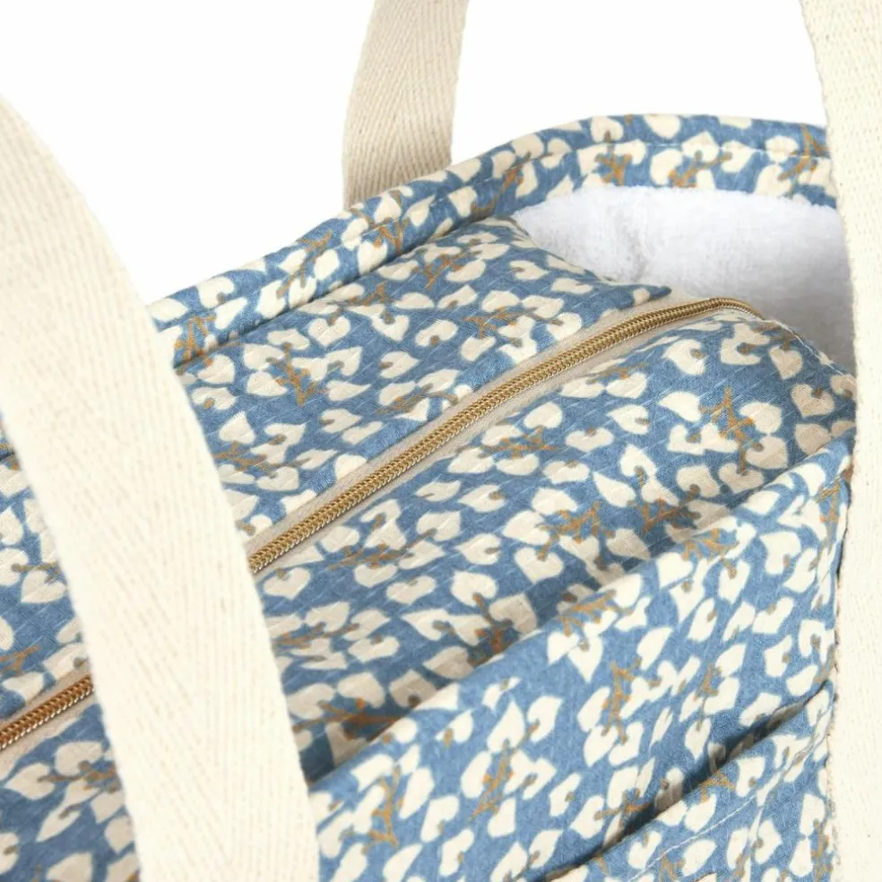 – Extérieur : sergé de coton bio imprimé et matelassé.