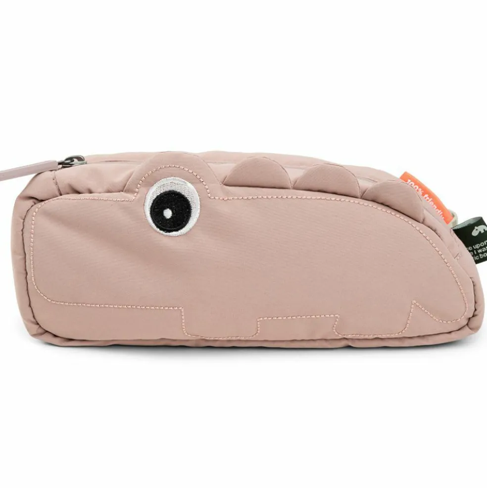 – Forme de Croco avec des écailles de crocodile sur le haut et une étiquette pour inscrire le nom à l’intérieur.