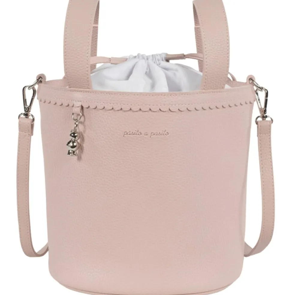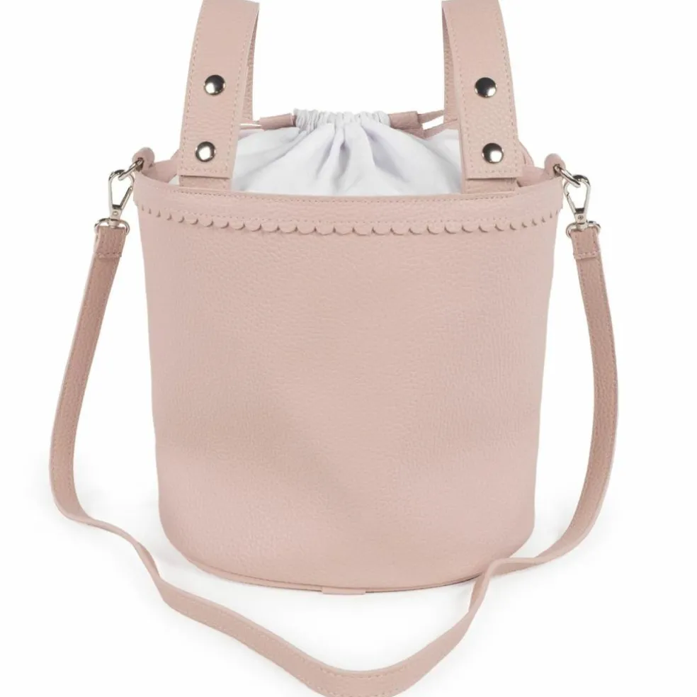 – Fabriqué en Simili-cuir de haute qualité dans une élégante teinte rose pastel, ce sac seau pour poussette se distingue par son bord festonné délicat et son charmant pendentif en forme d’ourson métallique qui lui confère une touche unique.