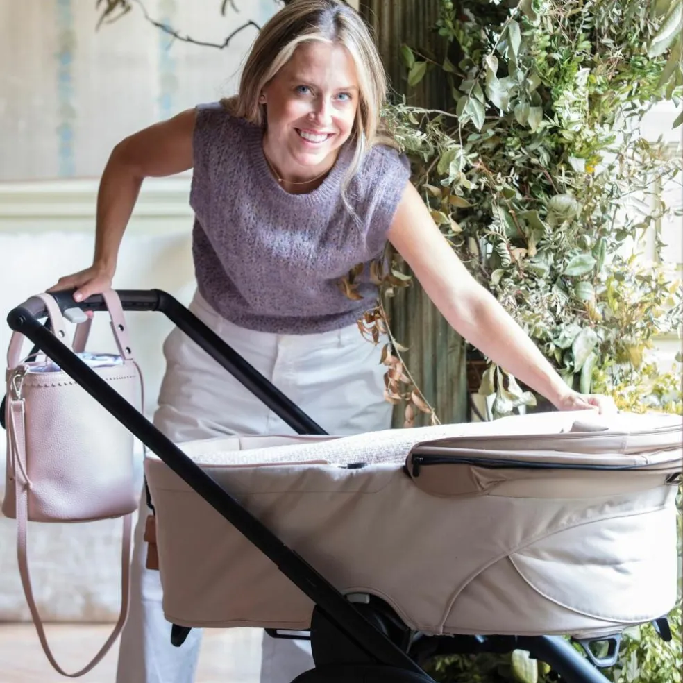 – Conçu pour offrir polyvalence et confort, il dispose d’une bandoulière longue pour le porter en sac à main et de poignées courtes pour l’attacher à la poussette.