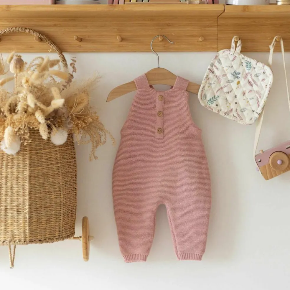 L’indispensable de l’été pour bébé : la Salopette en maille Rose légère de Trois Kilos Sept
