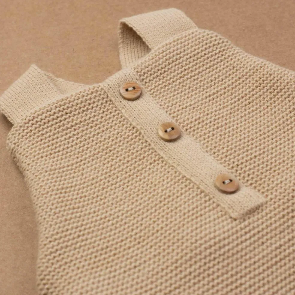 L’indispensable de l’été pour bébé : la Salopette en maille Sable légère de Trois Kilos Sept