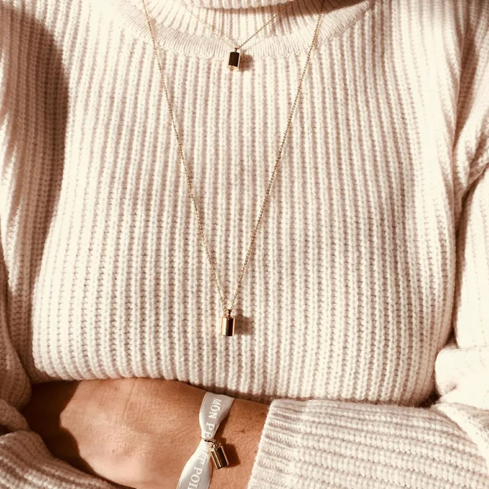 – Chaîne indissociable du pendentif, ajustable sur 3 longueurs : 65 cm, 70 cm ou 75 cm.