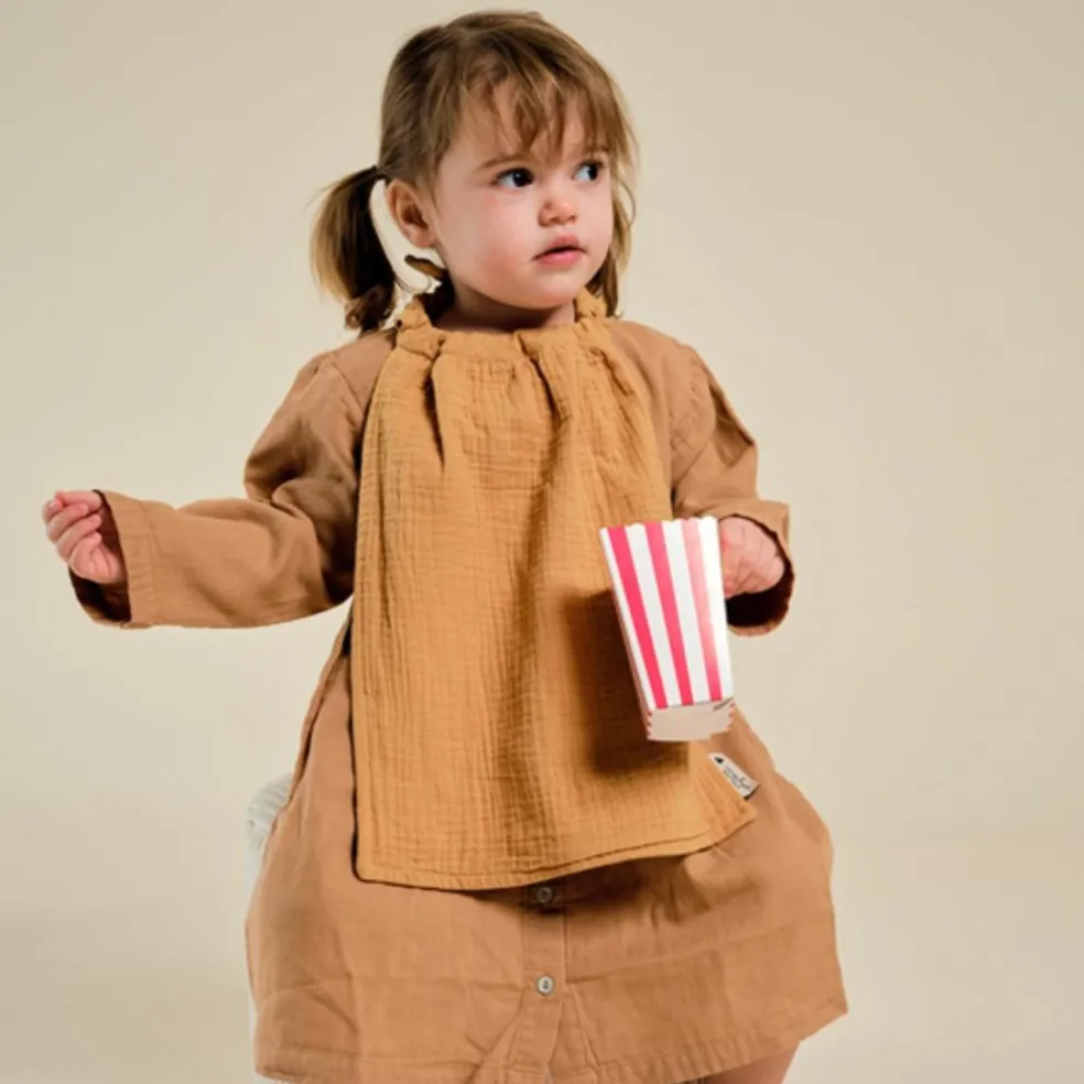 Avec son format idéal de 30×40 cm et son tour de cou élastiqué, cette serviette est pensée pour simplifier les repas des petits au quotidien. Le petit nœud amovible dans le cou ajoute une touche charmante et ludique, tout en facilitant l’utilisation. Grâce à sa doublure en éponge de bambou, elle assure une excellente absorption, rendant les repas plus sereins et moins salissants.