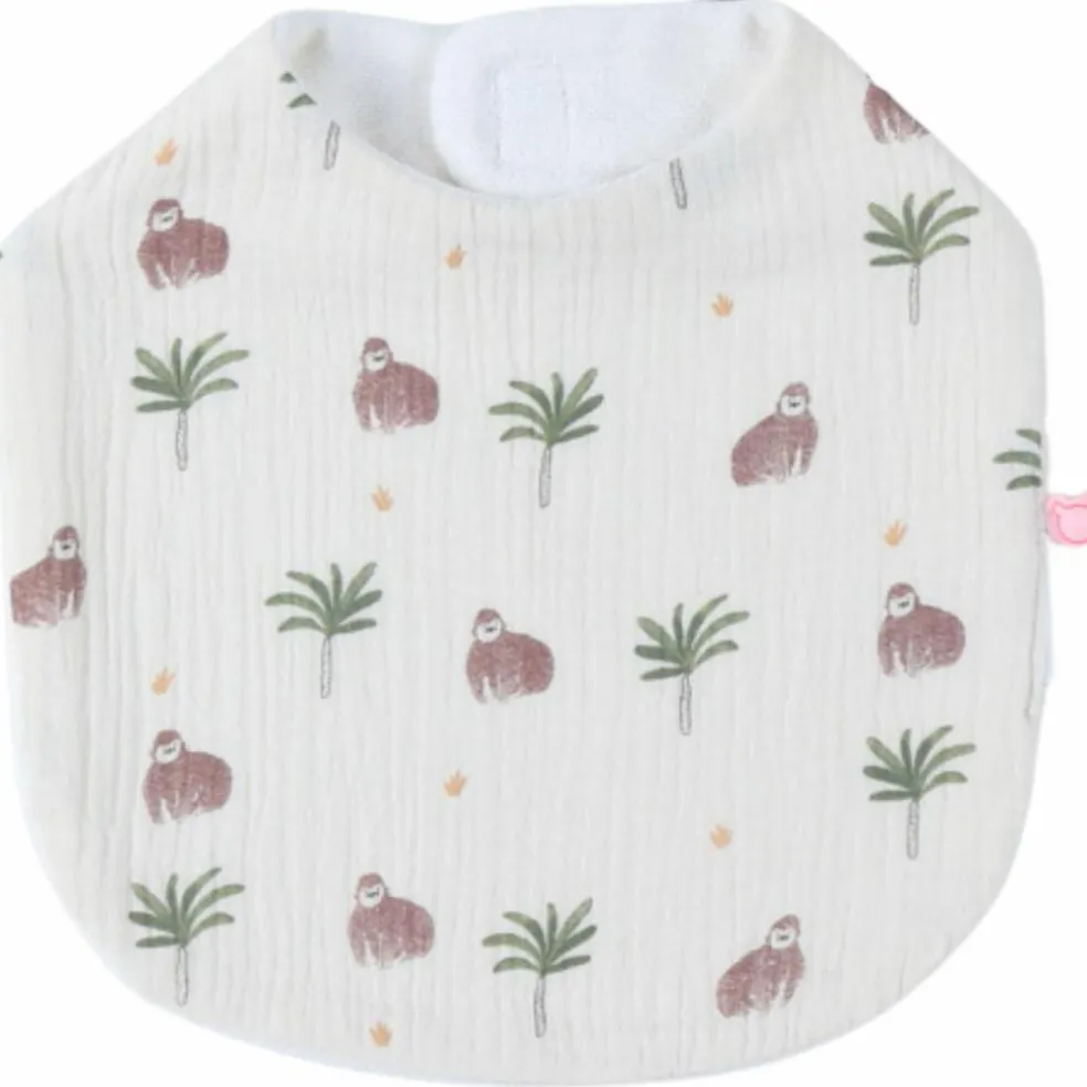 – Le set de 3 bavoirs est composé d’un bavoir écru avec un gorille, un bavoir kaki et un bavoir écru imprimé gorille.