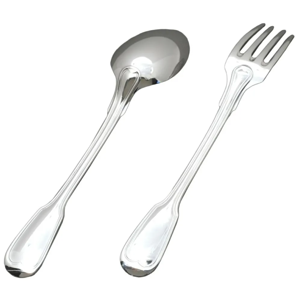 Pour une table raffinée et un bébé ravi, voici le set de 2 couverts Filet ancien de l’Orfévrerie de Crévigny.