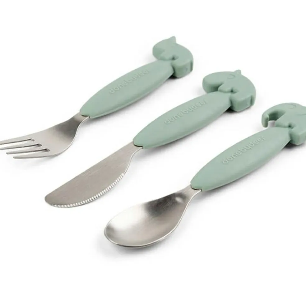 – Contient 1 cuillère, 1 fourchette et 1 couteau de 14 cm de hauteur.