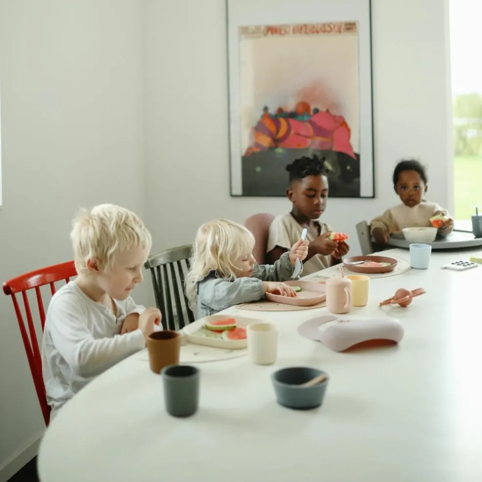 Rendez les repas plus doux et plus sereins avec le Set de table en silicone de Mushie, l’allié malin des petits et des parents !