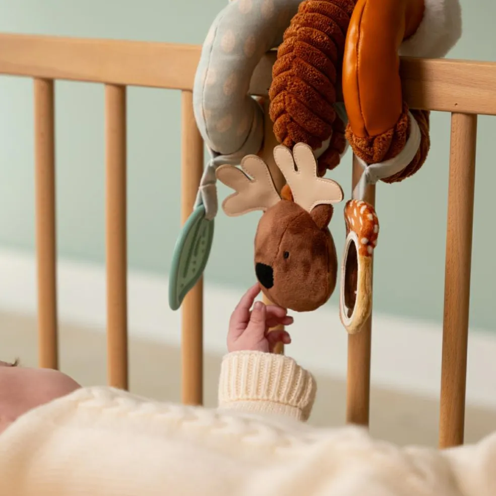 La spirale d’activité Little Big Friends Forêt amusera bébé lors de ses déplacements en poussette ou cosy.