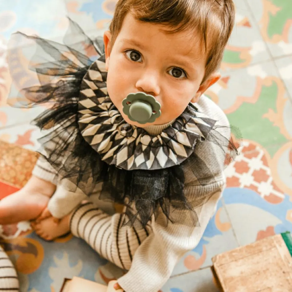 – Sa forme contribue également à éviter qu’elle ne heurte le nez, permettant la libre circulation d’air entre la sucette et les fosses nasales.