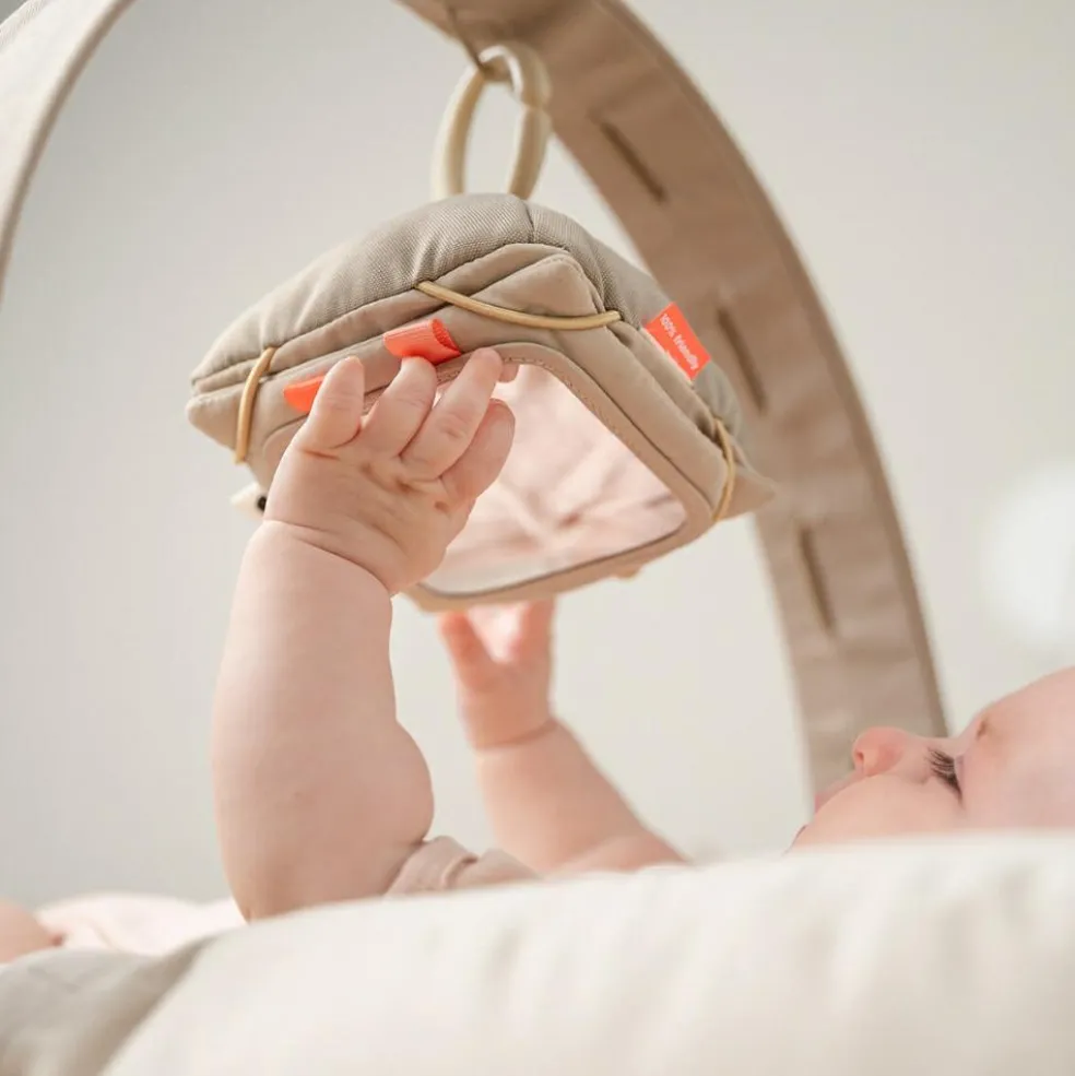 – Attachez-le sur une arche d’activité ou un tapis d’éveil ou posez-le par terre pour encourager bébé à jouer sur le ventre.
