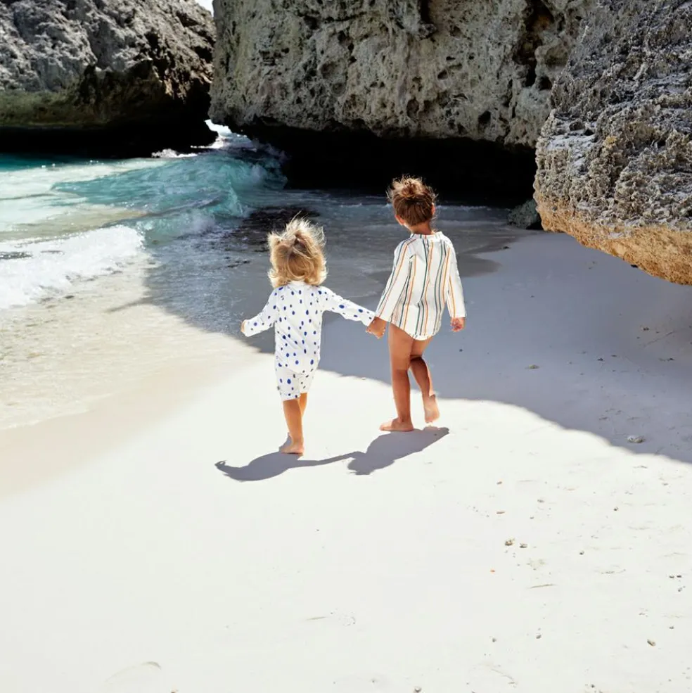 – Composé à 82% de polyester (recyclé) et de 18% d’élasthanne permet de profiter pleinement du plaisir de la baignade grâce à son indice de protection UV de 60 et de ses imprimés fantaisie.