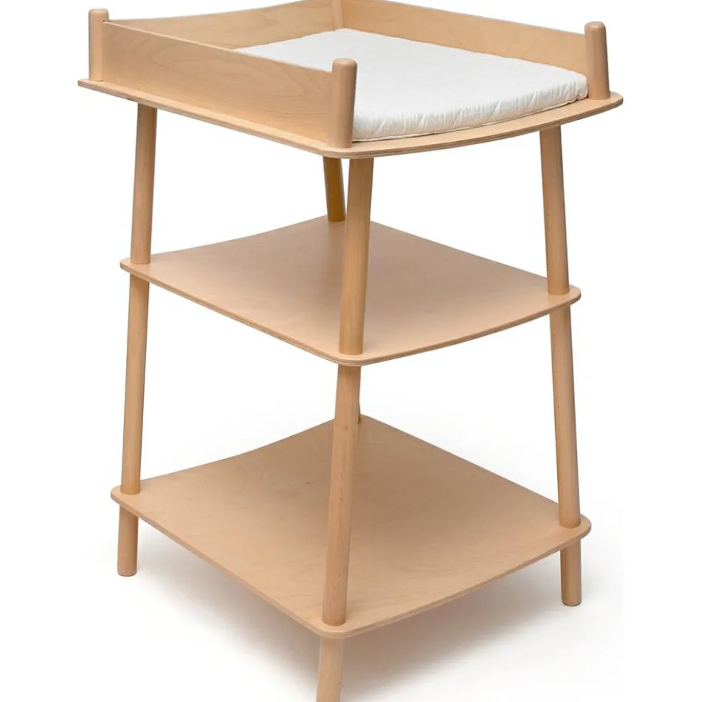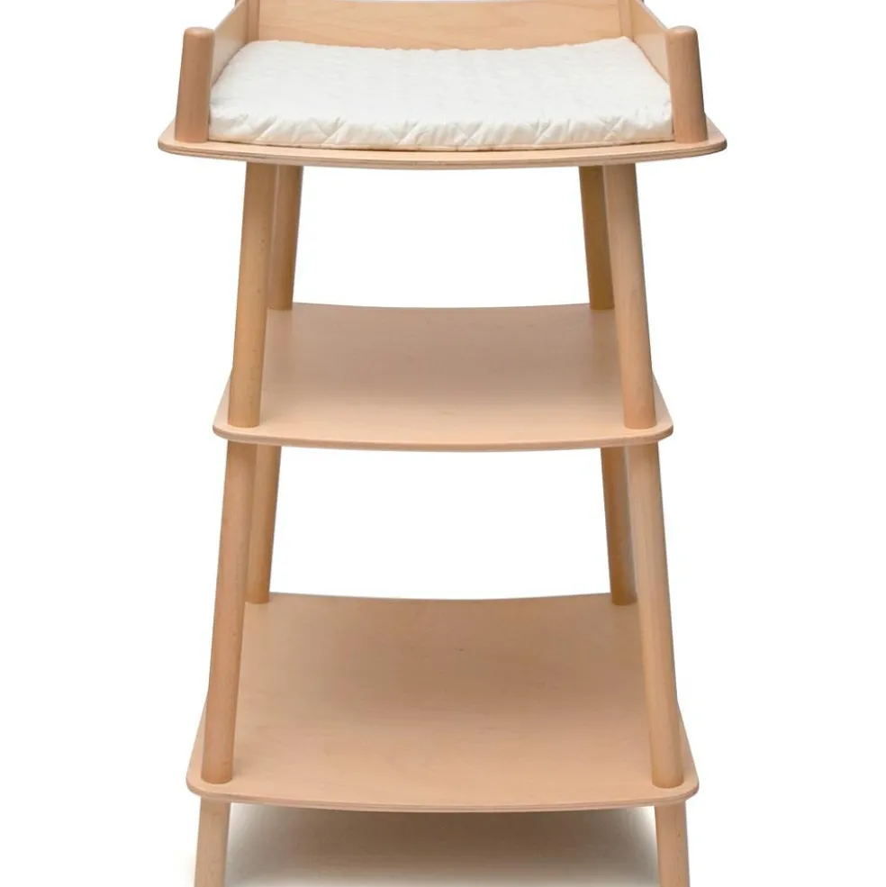 Conçue en bois de hêtre massif et équipée de deux plateaux de rangement incurvés, cette table à langer se distingue par son design épuré et moderne. Elle s’intègre facilement aussi bien dans une chambre que dans une salle de bains, tout en offrant praticité et stabilité au quotidien. Grâce à ses rebords surélevés, vous pouvez changer bébé en toute sécurité dès la naissance et jusqu’à 15 kg.