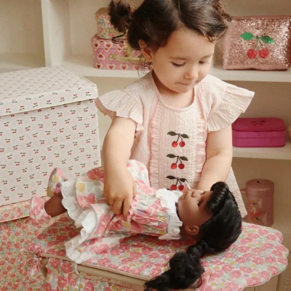 – Table à langer pour poupée avec structure en métal robuste et plateau en coton doux.