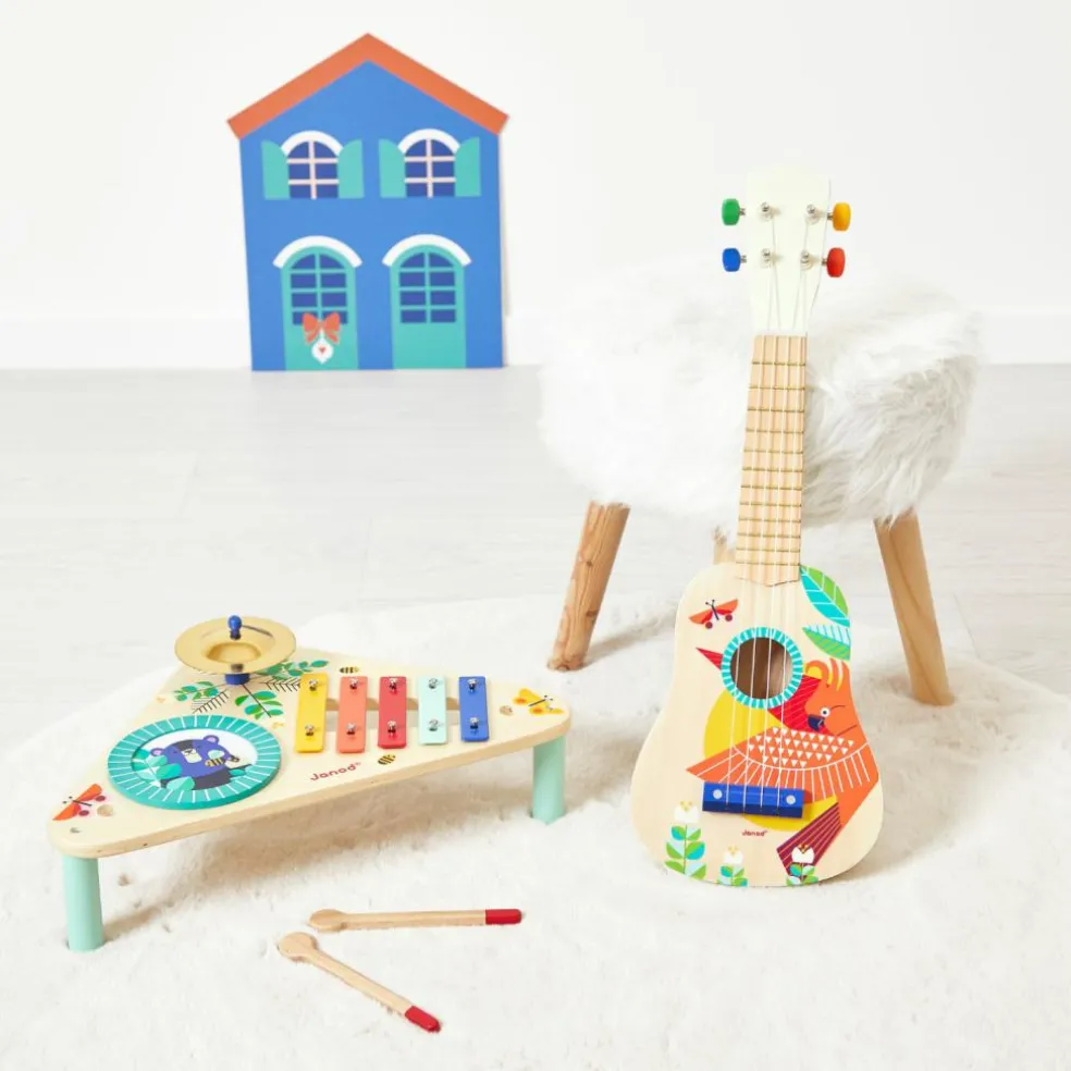 – 1 cymbale, 1 tambour, 1 xylophone 5 tons et ses baguettes en bois.