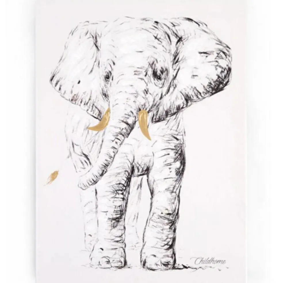 Le tableau éléphant de la marque Childhome donne une touche de décoration tendance et pleine de peps à la chambre de bébé !