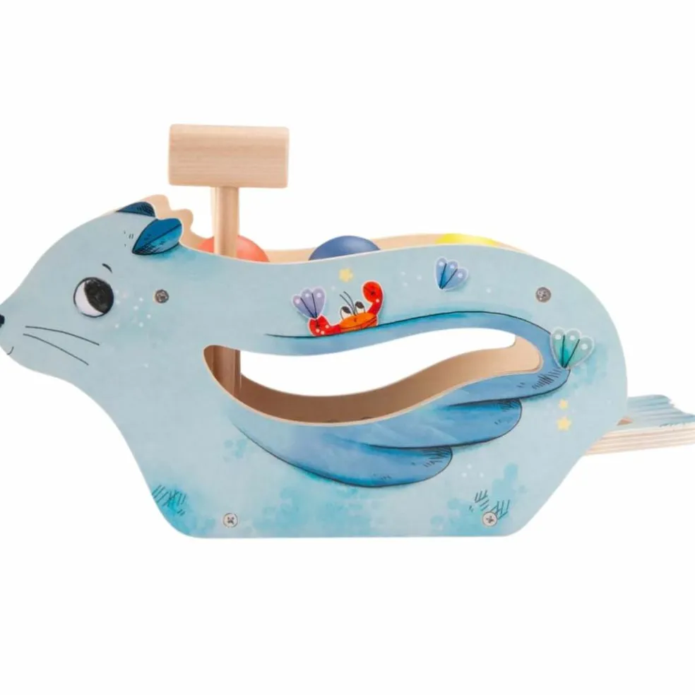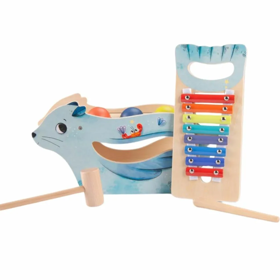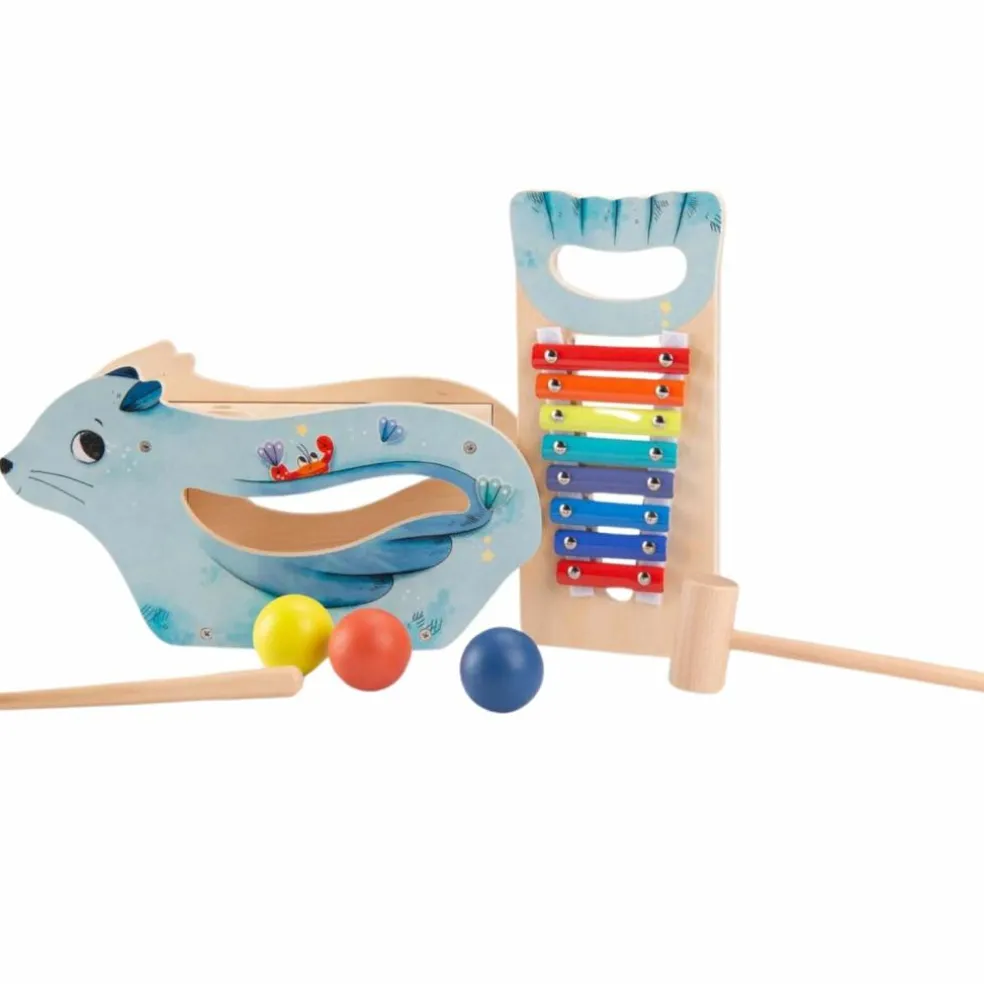 – La chute de la boule sur le métallophone enclenchera une douce mélodie.
