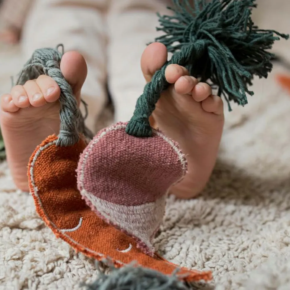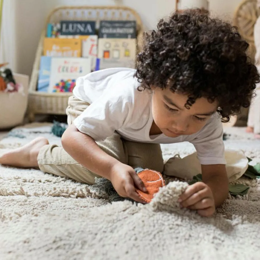 – Sur les bords, le tapis cache de petites poches simulant les trous du jardin pour planter des légumes.