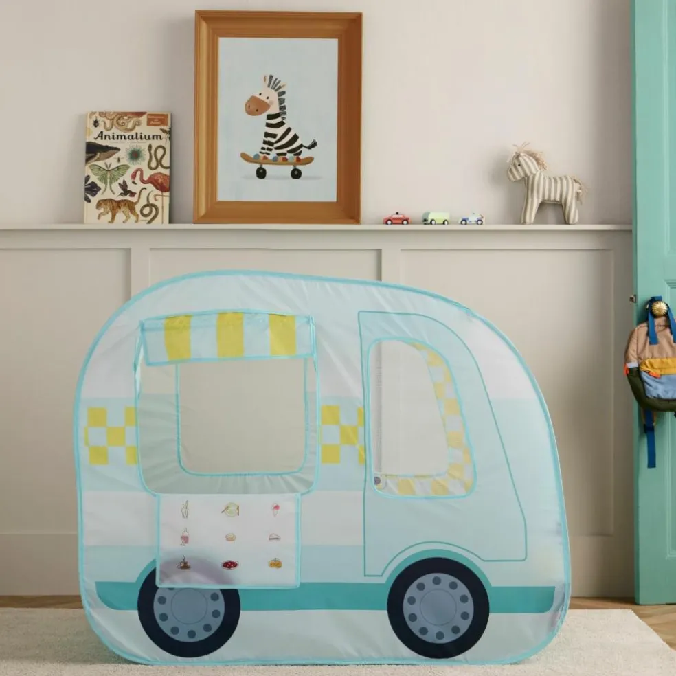 – Une aventure à domicile : Cette tente ludique se transforme tour à tour en food truck, en van de vacances ou en repaire secret selon l’imagination de votre enfant.