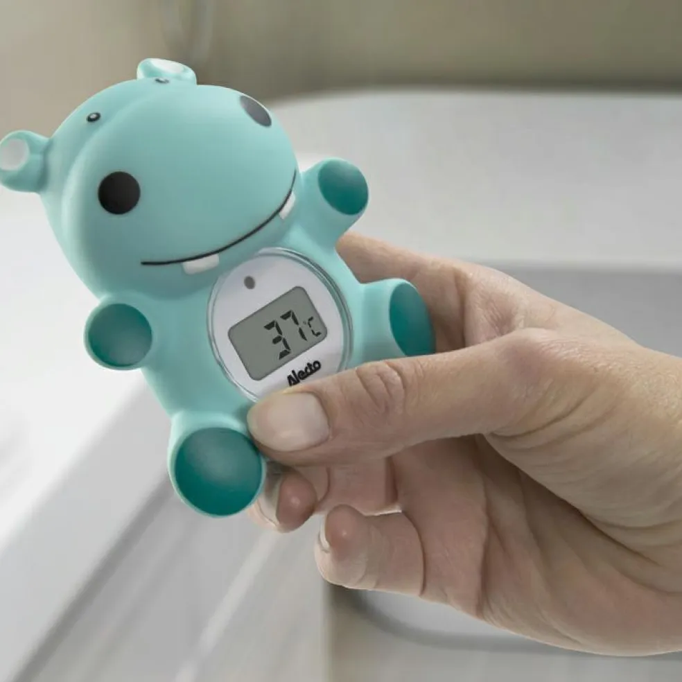 Un bain en toute sécurité avec le thermomètre de bain et d’intérieur hippopotame d’Alecto !