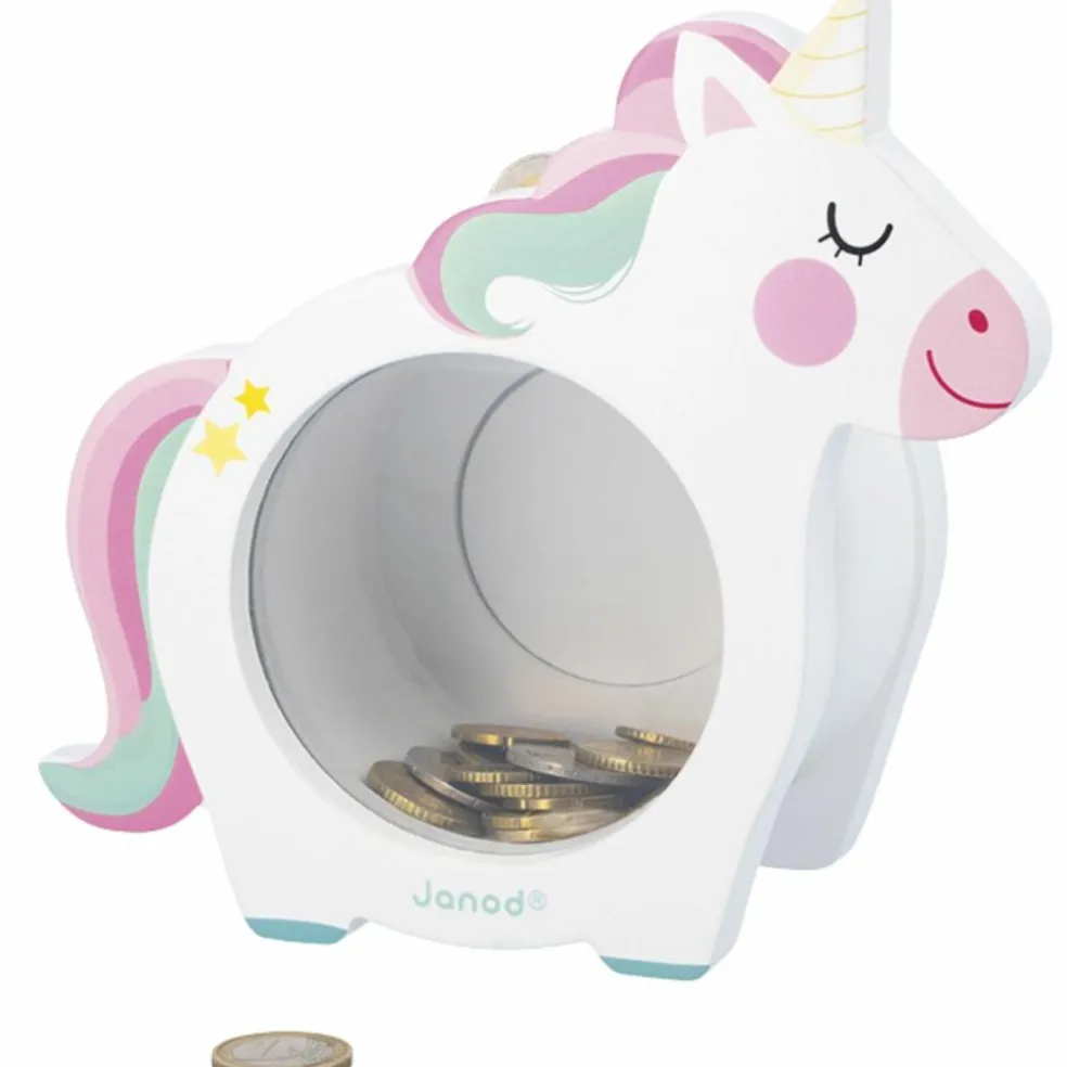 Apprenez la magie de l’épargne dès le plus jeune âge avec la Tirelire en bois Licorne de Janod !