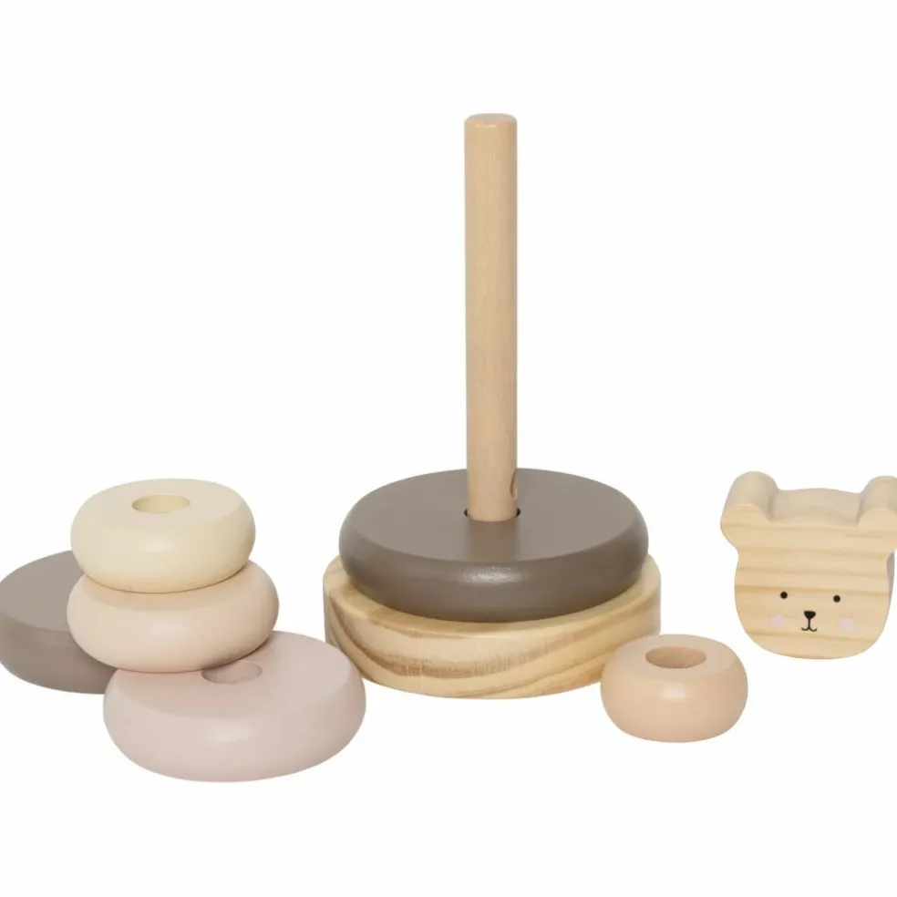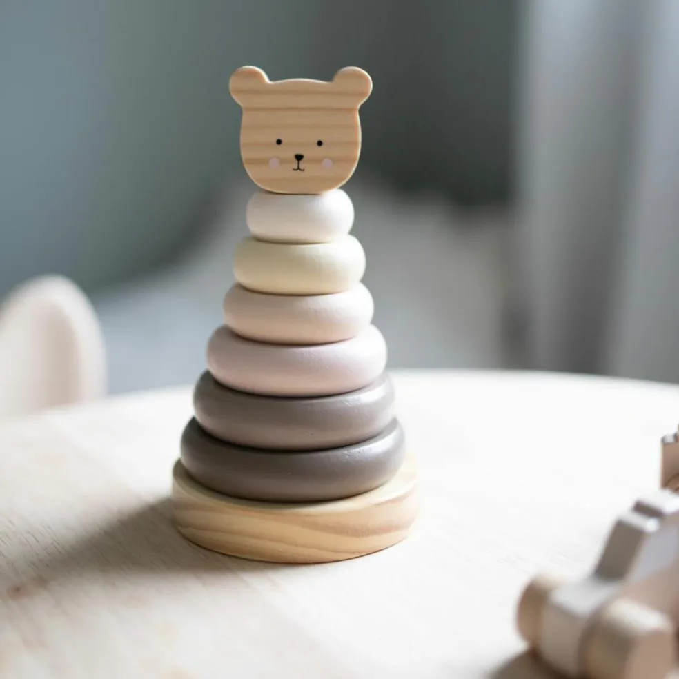 Avec ses anneaux en bois aux teintes douces et naturelles, surmontés d’une adorable tête d’ourson, cette pyramide séduit petits et grands. L’enfant s’amuse à empiler les anneaux du plus grand au plus petit (ou dans l’ordre de son choix), tout en développant sa motricité fine, sa coordination et sa logique. Un jouet simple, beau et éducatif qui traverse les générations.
