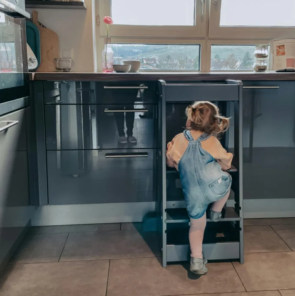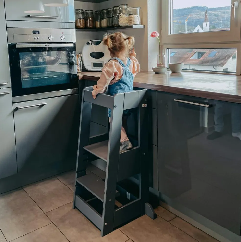 – Conçue pour rapprocher l’enfant du plan de travail ou de la table.