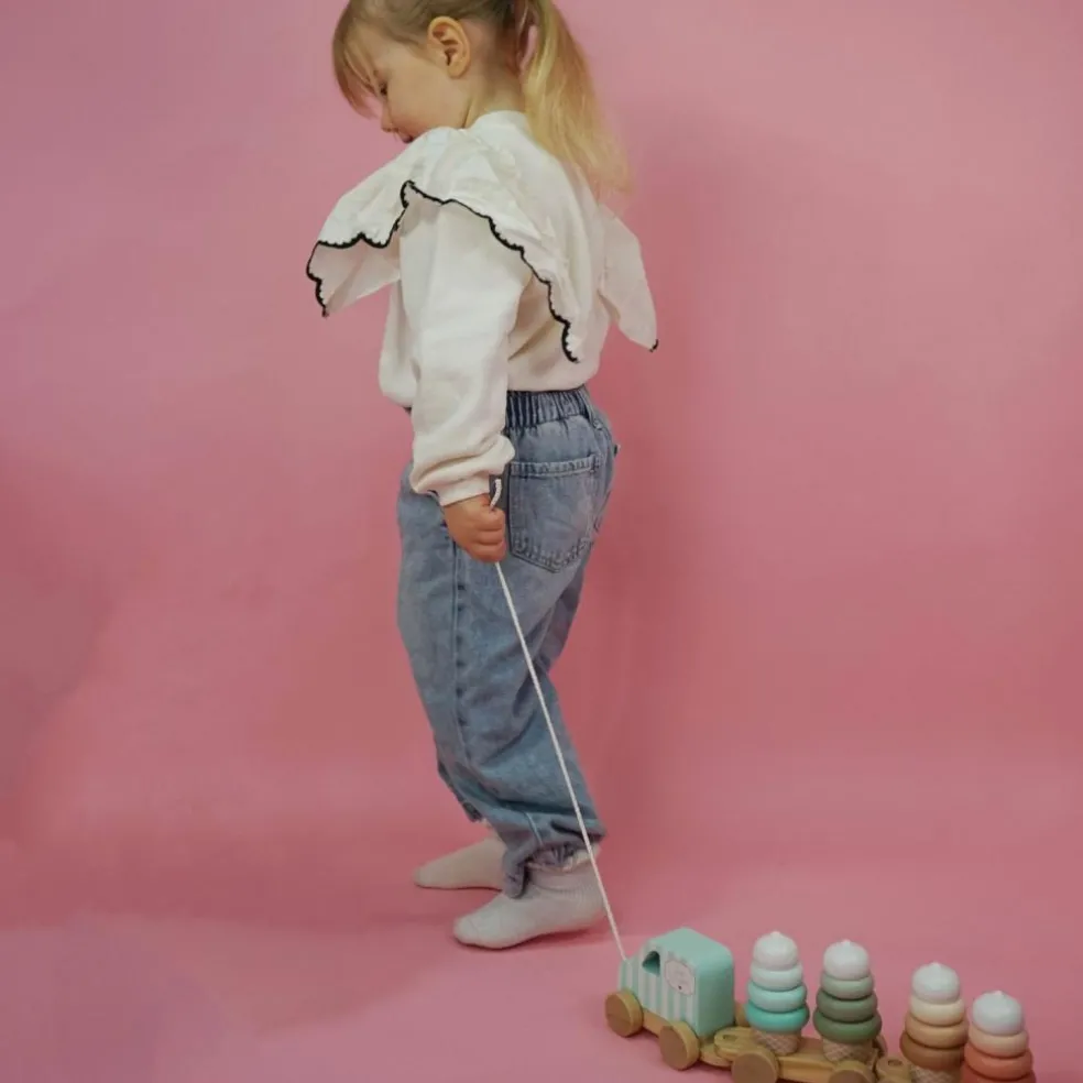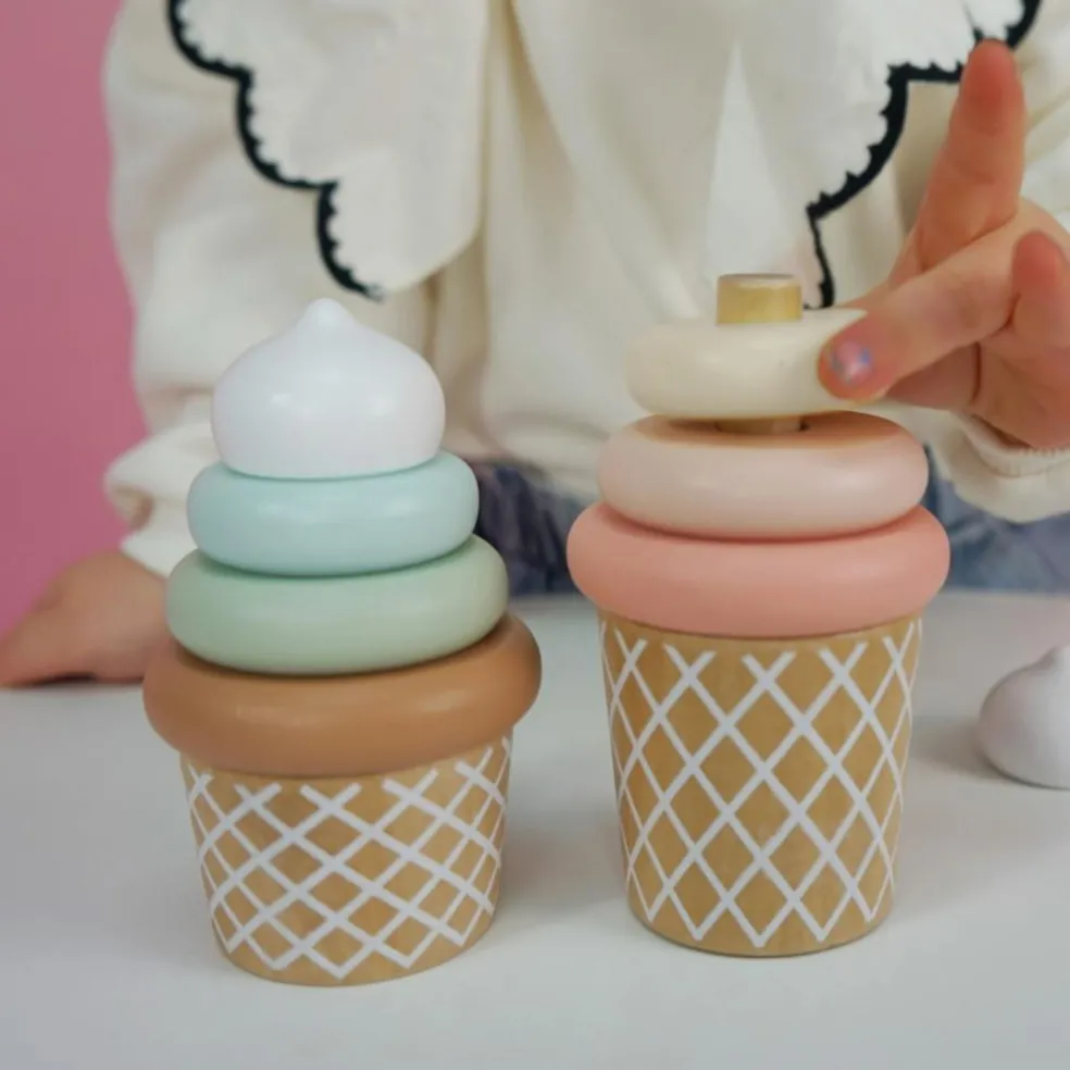 Un jouet original et plein de fantaisie qui combine jeu d’empilage et train à tirer. Les enfants s’amusent à construire de délicieuses glaces colorées, puis à les promener partout grâce au petit train équipé d’une cordelette. Entre apprentissage et amusement, ce train stimule la créativité, la coordination et la motricité fine.