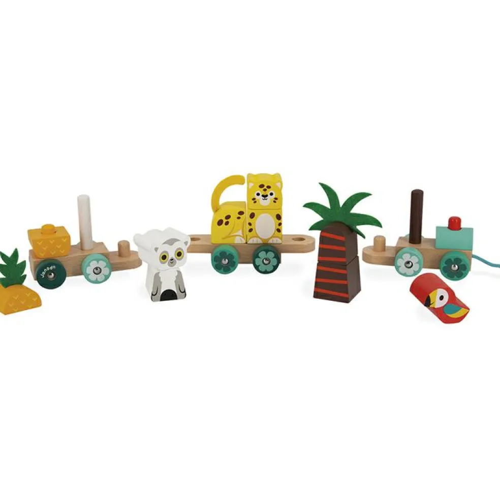 – 11 pièces pour reconstituer un perroquet, un palmier, un jaguar, un lémurien et un ananas.