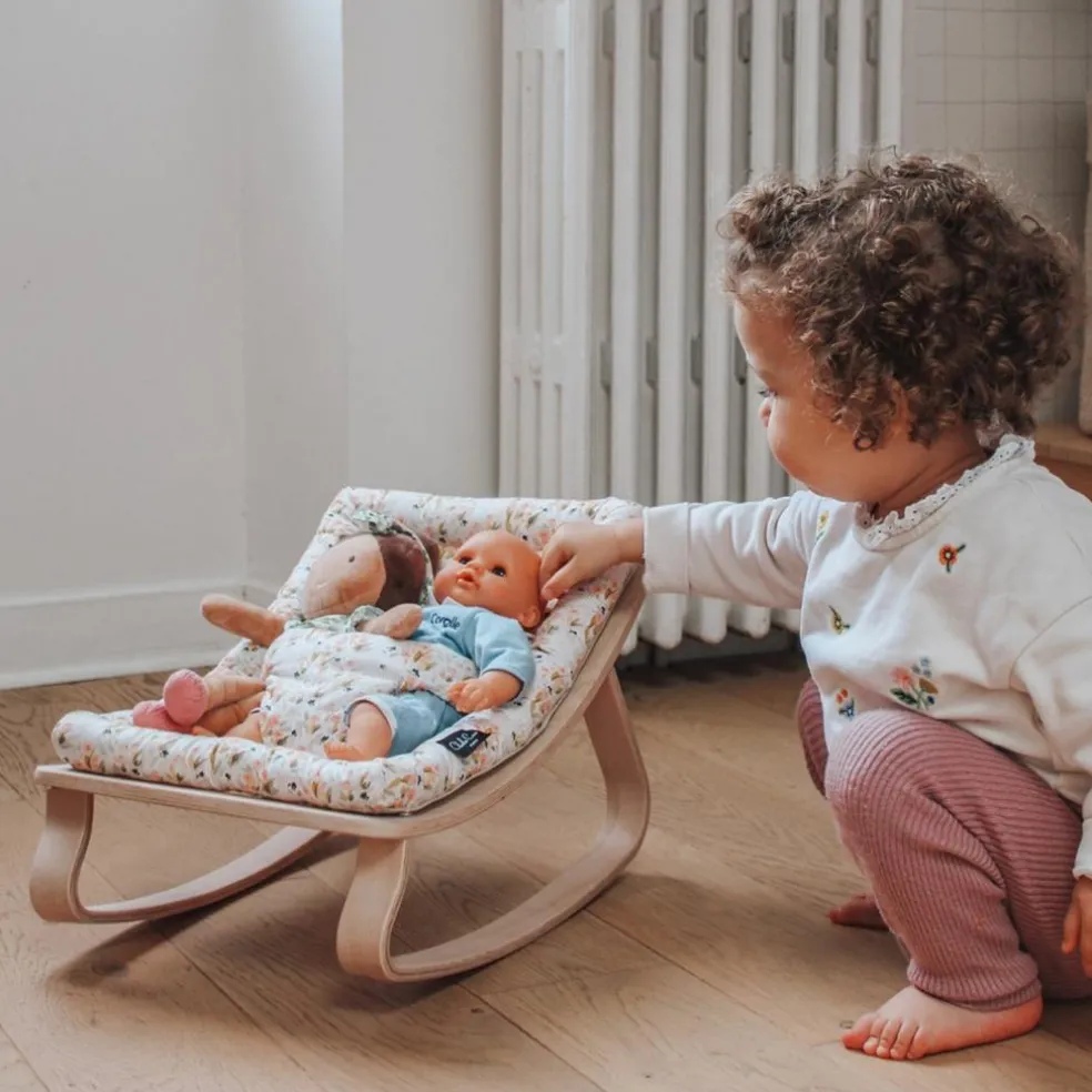 Si le transat LEVO a bercé les moments de votre bébé, cette adorable réplique permet aux enfants de prolonger la magie en prenant soin de leurs poupées et peluches.