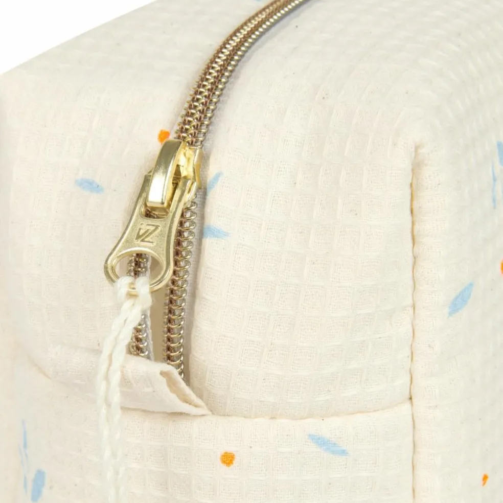– Notre nid d’abeille 100% coton bio est raffiné, élégant et résistant, idéal pour les affaires de toilette.