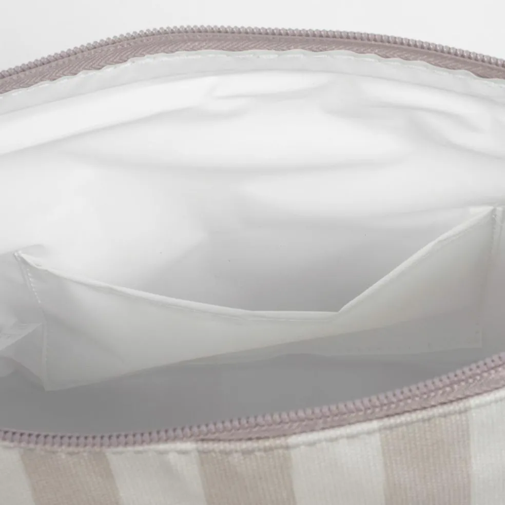 – La trousse de toilette pour bébé Sintra à rayures beiges est un sac spécialement conçu pour transporter toutes les affaires de toilette de notre fille ou de notre garçon lorsqu’il sort de la maison.