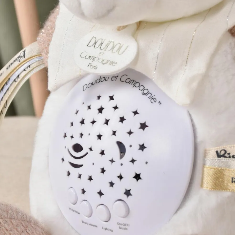 Doudou et Compagnie fête ici ses 25 ans d’amour et de douceur avec une collection anniversaire exclusive, symbole d’un savoir-faire tendre et raffiné. Grâce à la GARANTIE DOUDOU et à son numéro unique, cette veilleuse peut être retrouvée en cas de perte. Une attention précieuse pour accompagner les plus petits en toute sérénité.