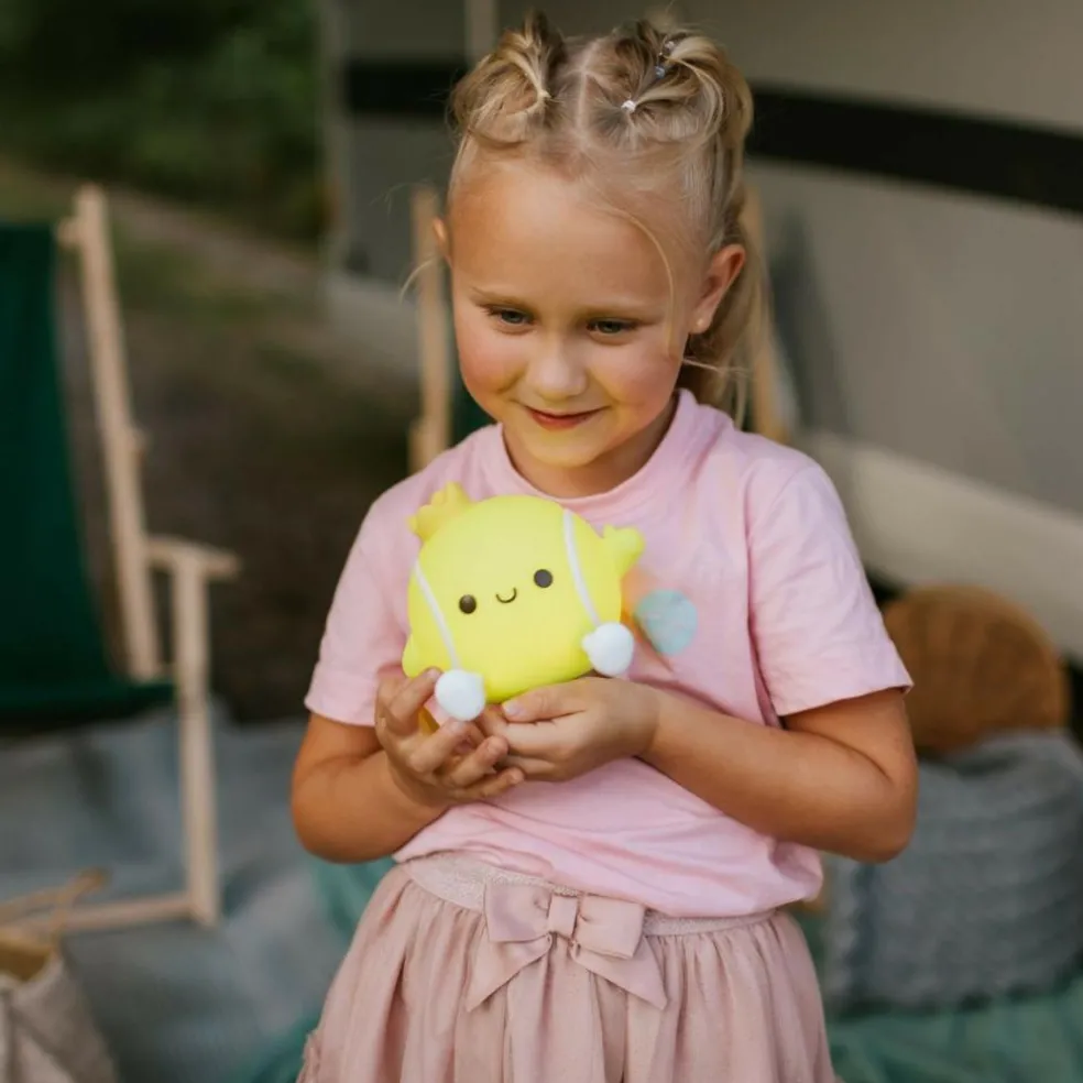 Avec son design amusant en forme de balle de tennis souriante, cette lampe apporte une touche ludique et apaisante à la décoration. Sa lumière neutre de 4000K diffuse une clarté douce, parfaite pour lire une histoire, se détendre ou s’endormir paisiblement. Conçue en silicone souple et agréable au toucher, elle est résistante, stable et sécurisée pour une utilisation quotidienne.
