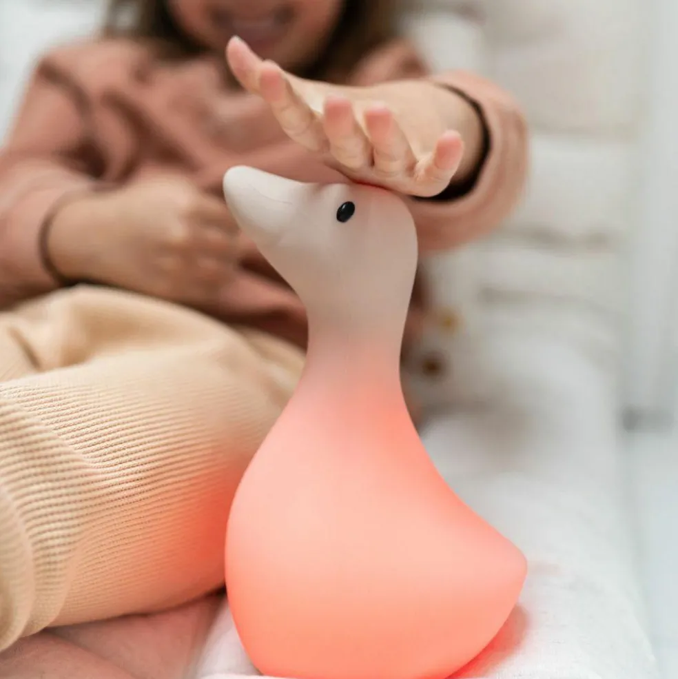– Une veilleuse rechargeable en forme d’oie, au nom de LIVA, en silicone doux.