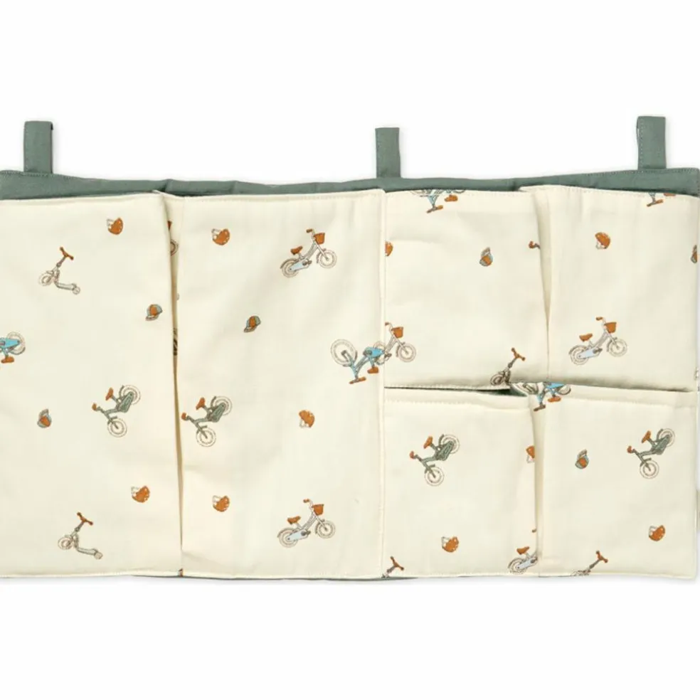 – Une jolie pochette de rangement pratique à installer sur un lit d’enfant pour accueillir les tétines, livres, doudous et autres accessoires indispensables pour la nuit.